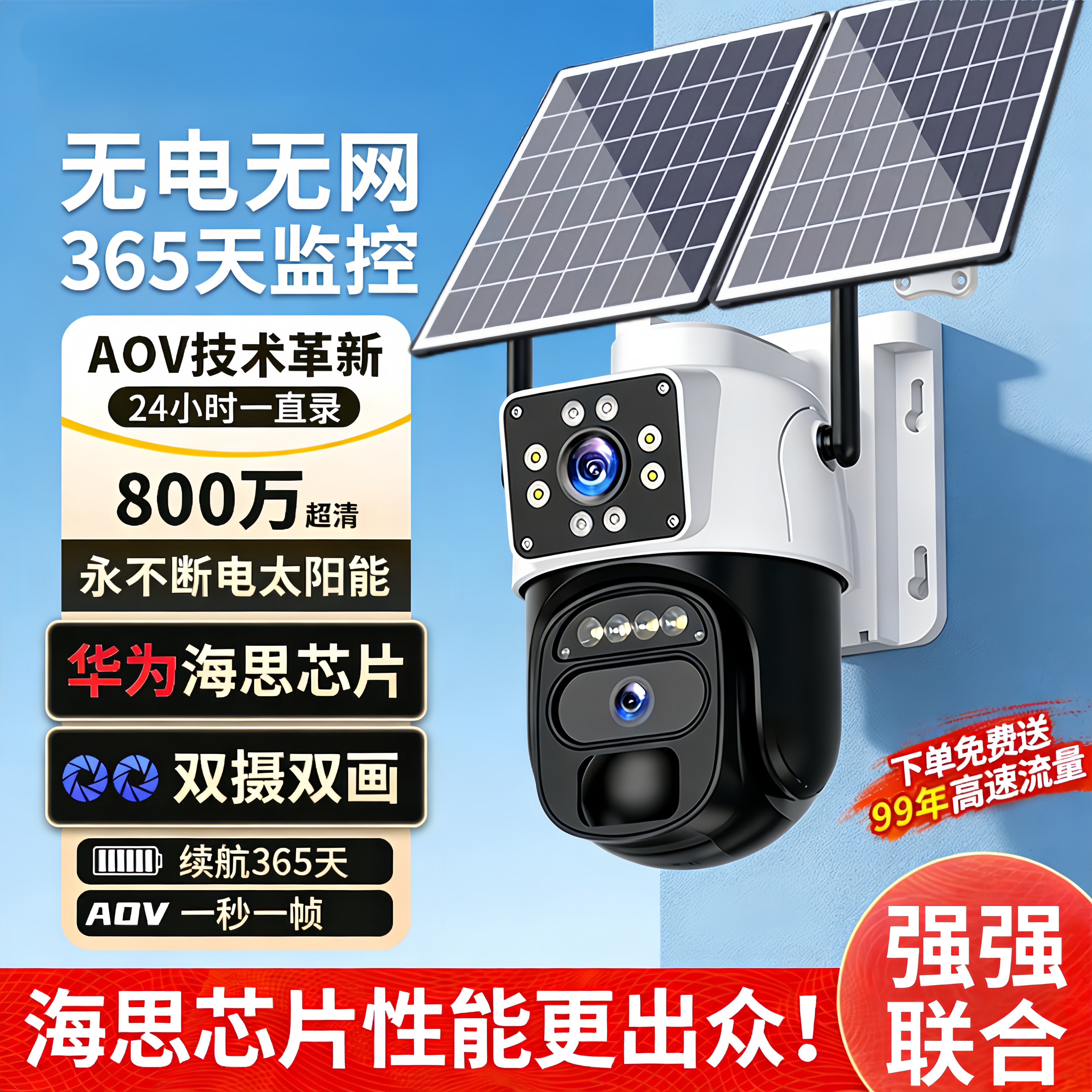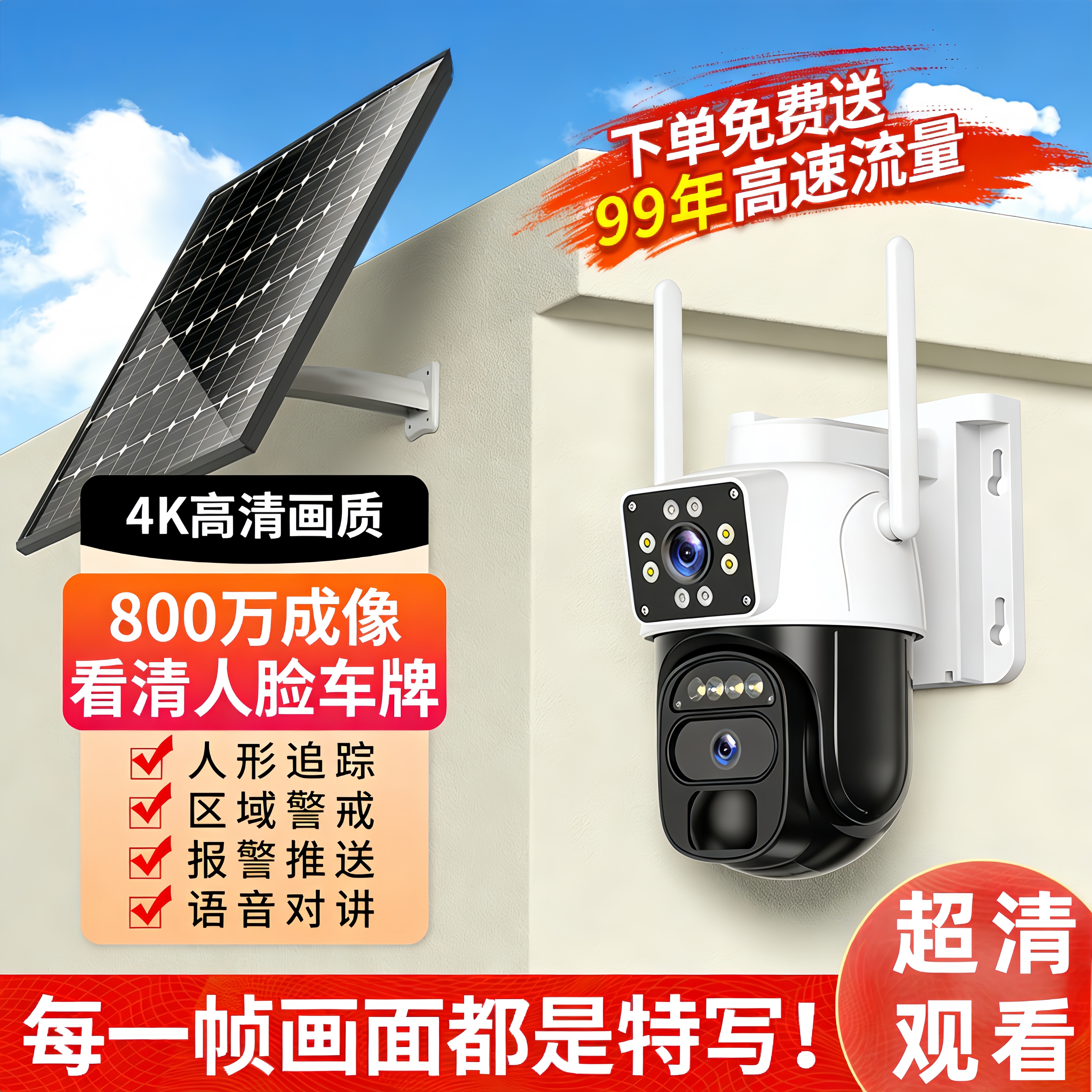 小鹰看看AOV太阳能监控器摄像头360°全景高清手机远程室外夜视