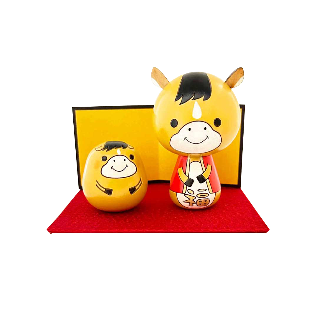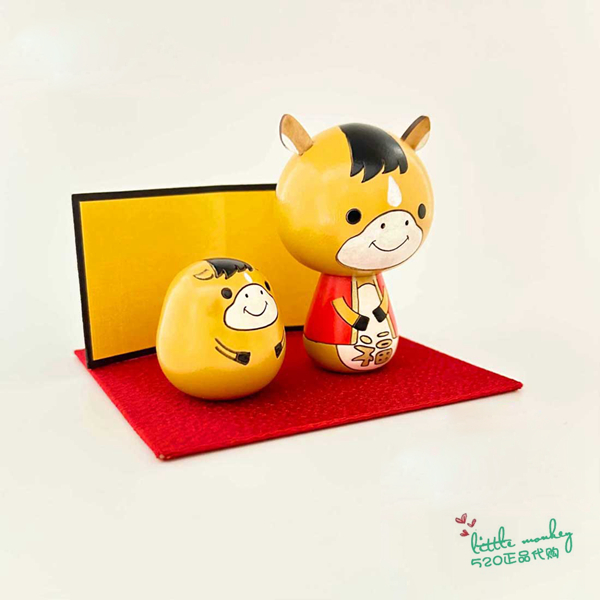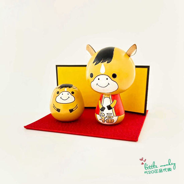 日本代购 2026年生肖马 职人手工制作 日式屏风招福木偶开运摆件