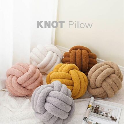 i编织打结d球抱枕羊羔绒卷靠枕沙发枕手枕 圆球形靠垫儿童房装饰