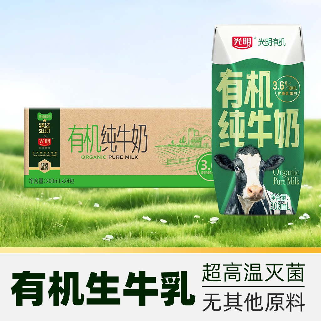 臻选光明有机纯牛奶3.6g乳蛋白200mLX24礼盒装品质生活早餐奶