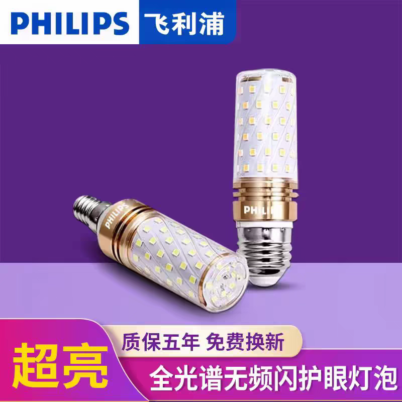 飞利浦led玉米灯泡e27e14小口客厅吊灯家用节能超亮光源三色变光