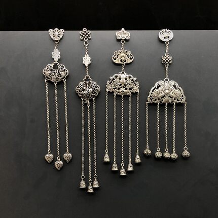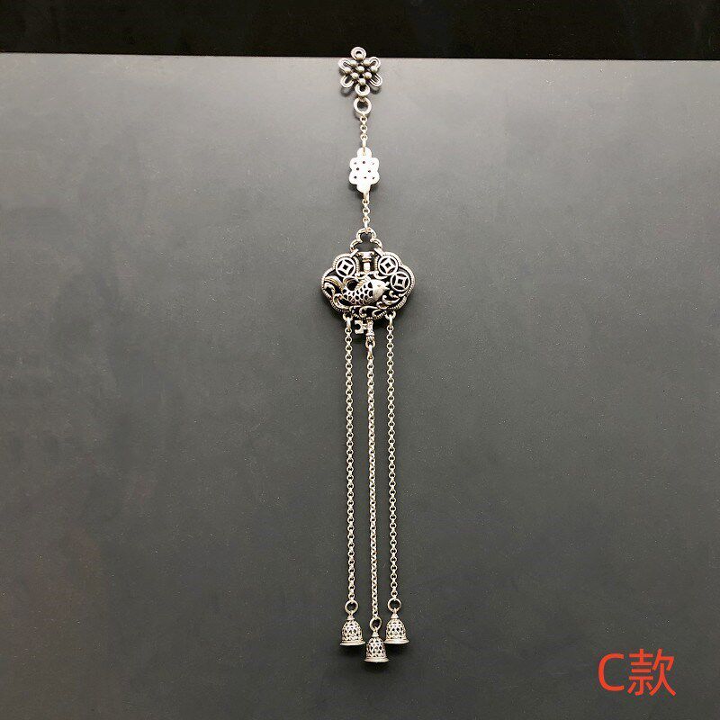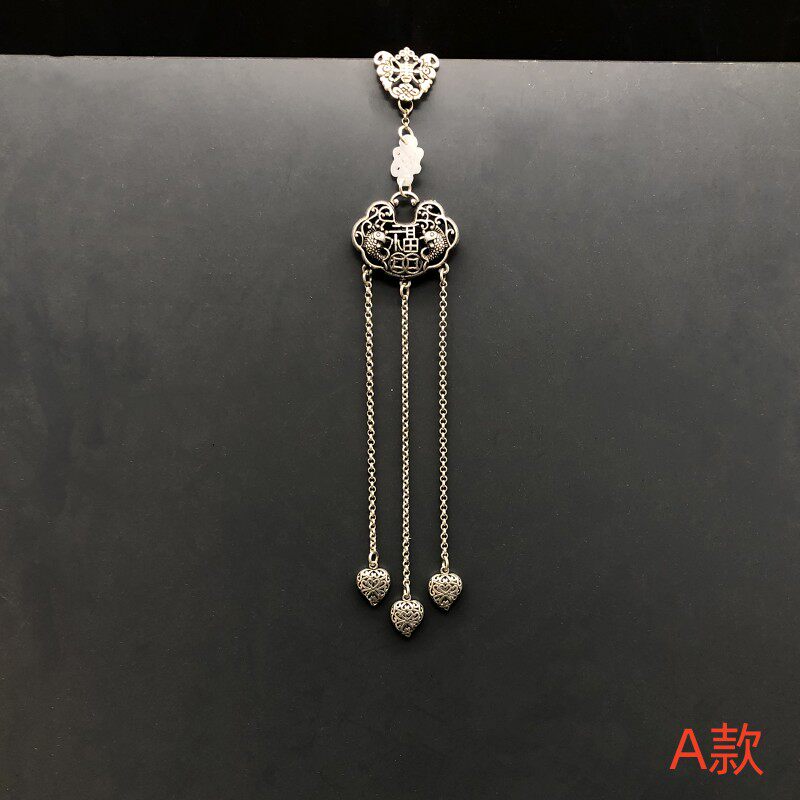 旗袍压襟挂件银饰长命锁吊坠古典中国风配饰汉服复古苗银胸针饰品