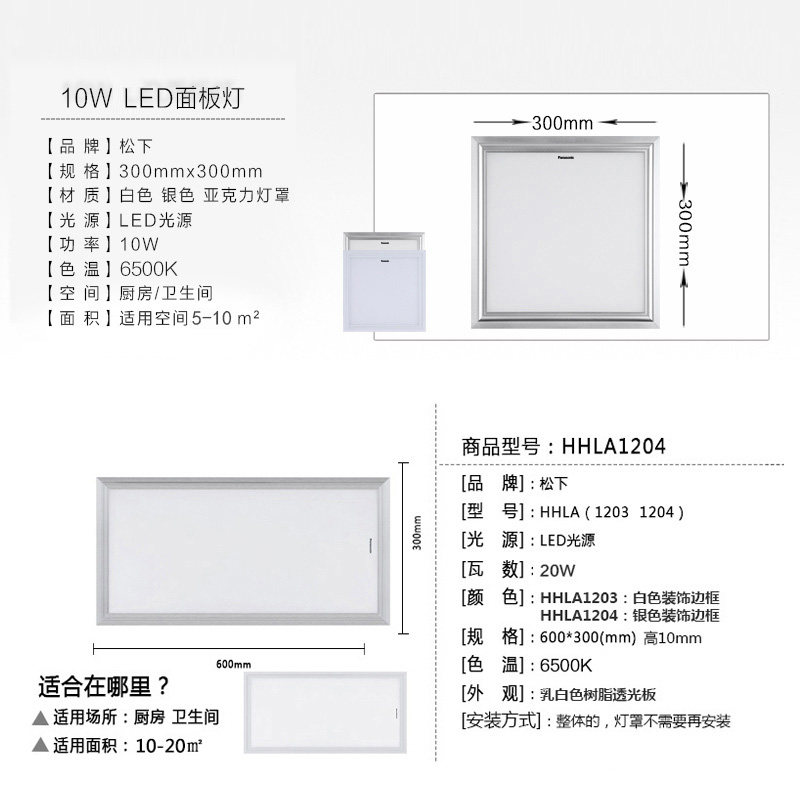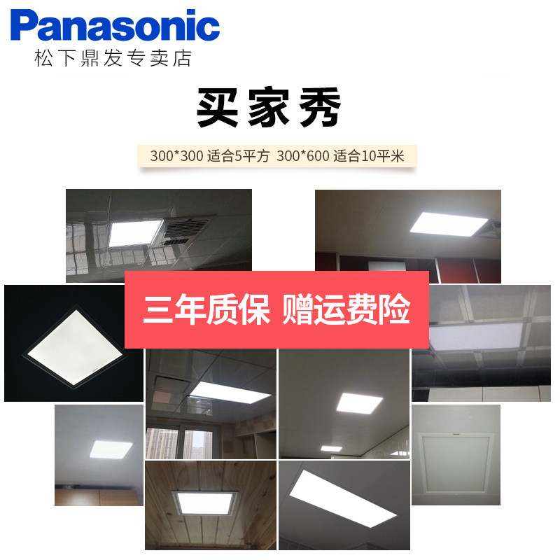 松下灯具集成吊顶led灯吸顶灯嵌入式照明平板灯300*300方灯厨房灯