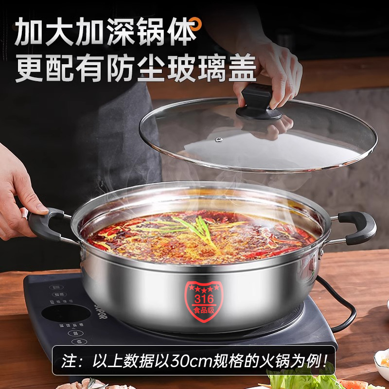 316L不锈钢火锅厨房大容量汤锅食品级不沾锅电磁炉煲汤专用锅商用