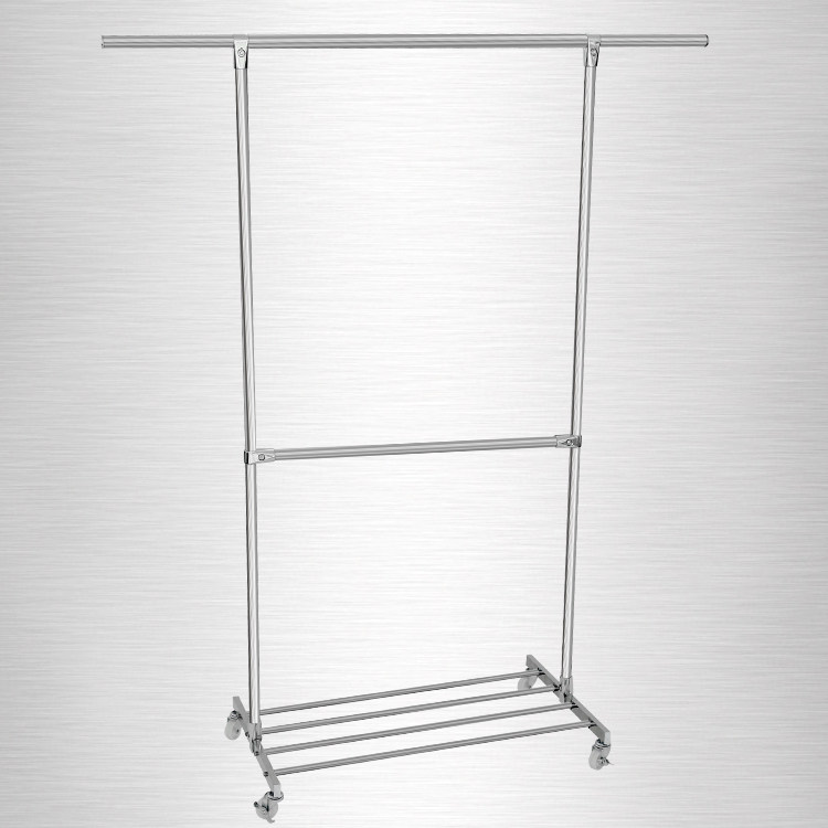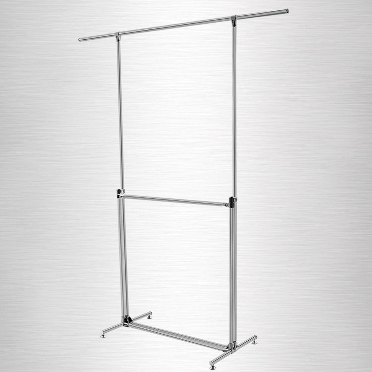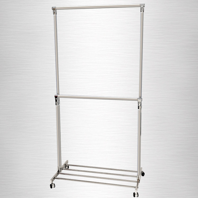 双层单杆式晾衣架晒衣架不锈钢落地凉衣架杆阳台伸缩挂衣服架移动