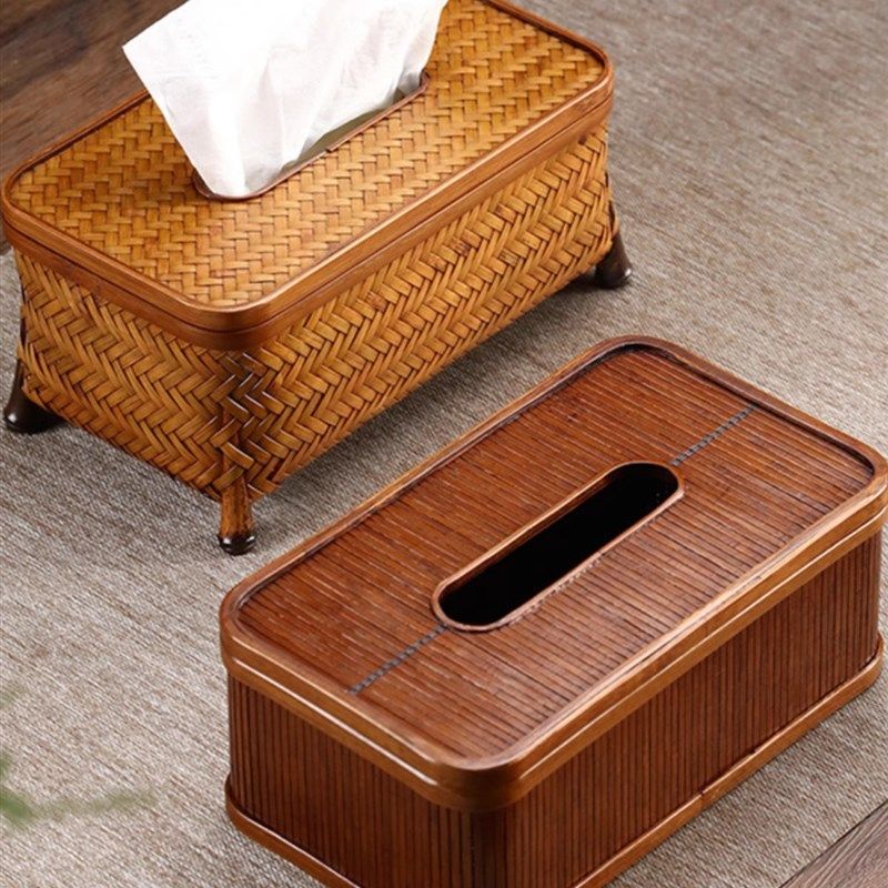 大漆纯手工竹编纸巾盒o抽纸盒长方形餐巾纸盒客厅餐厅书房茶室中