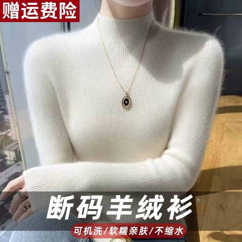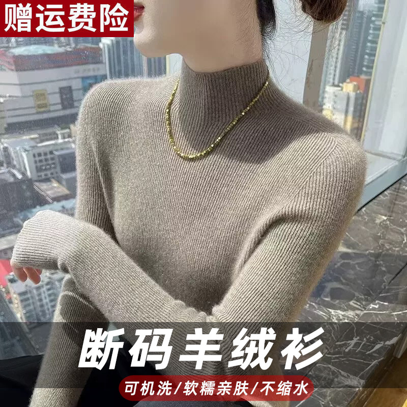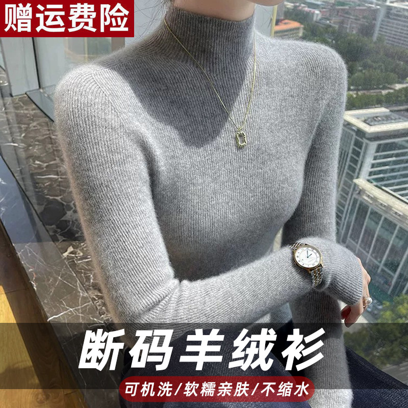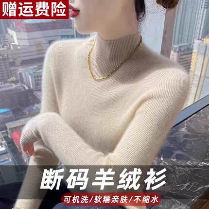 鄂尔多斯市秋冬羊毛衫软糯精纺半高领羊绒衫女内搭针织毛衣打底衫