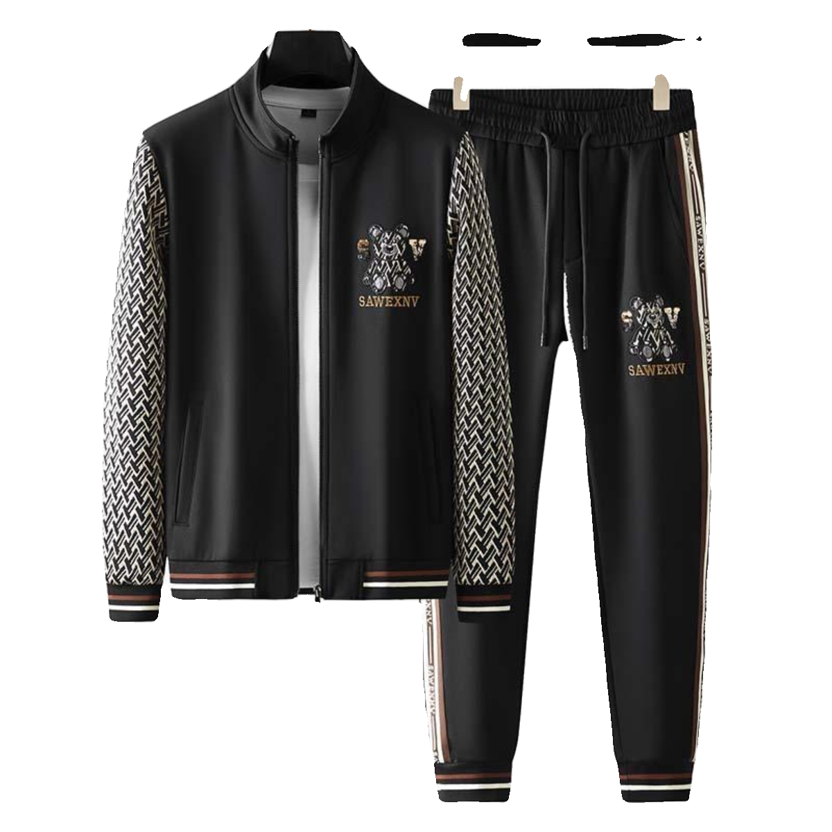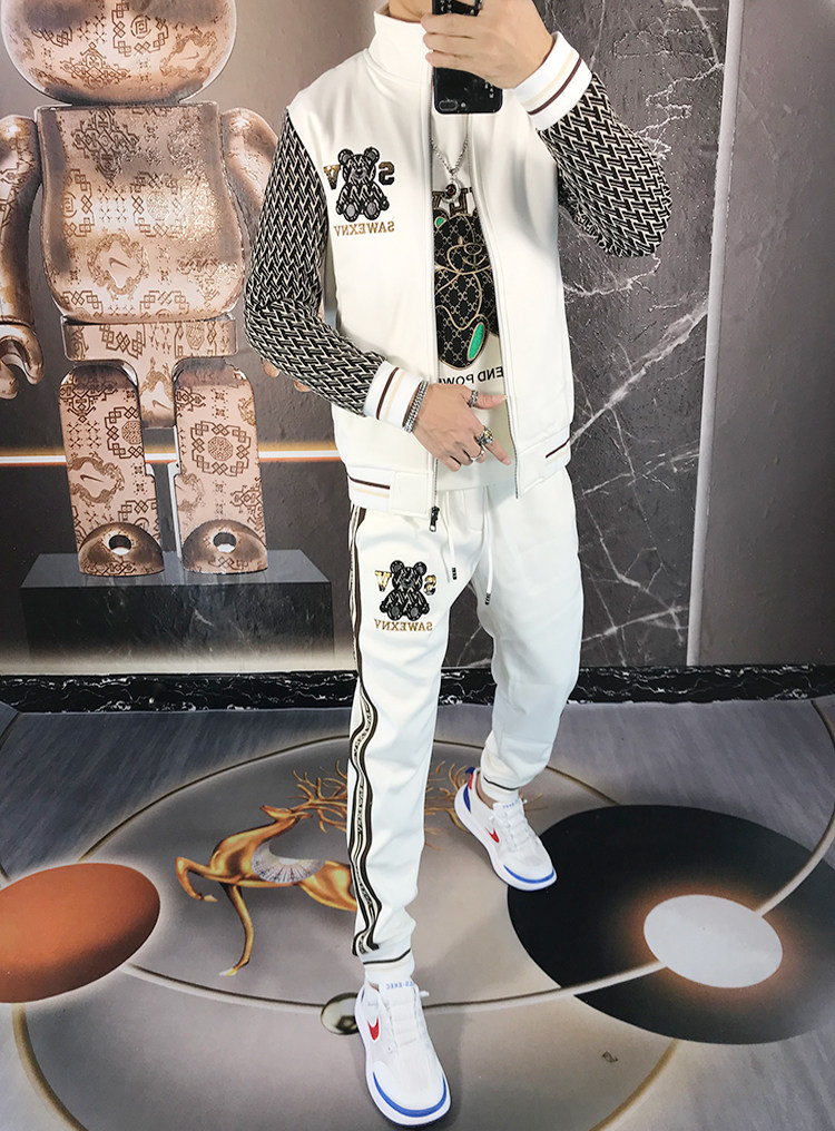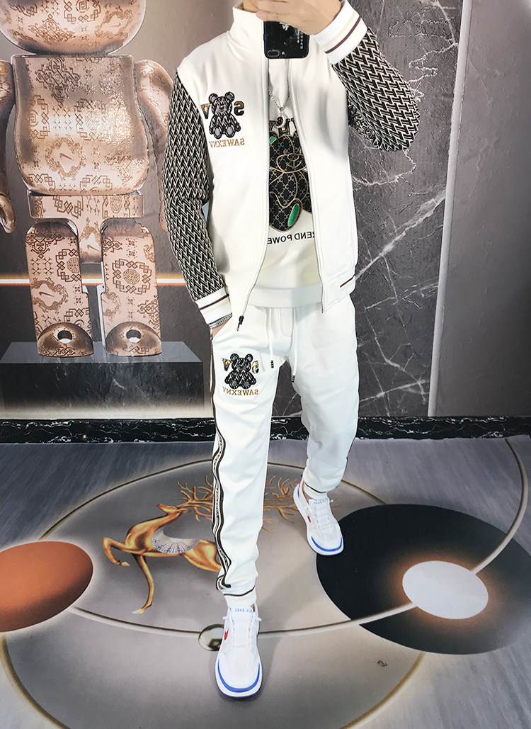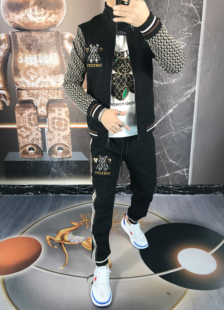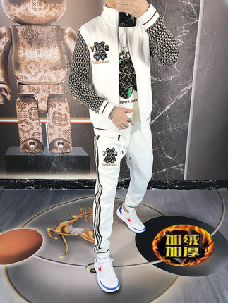 欧洲站刺绣男士开衫套装潮牌2023冬季加绒加厚休闲运动一套装搭配
