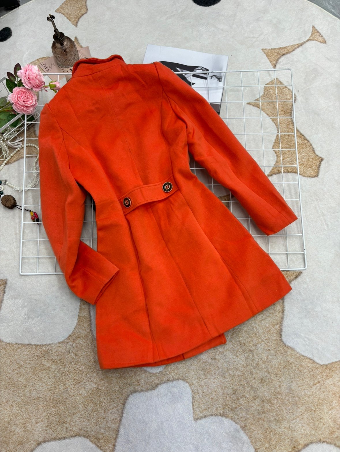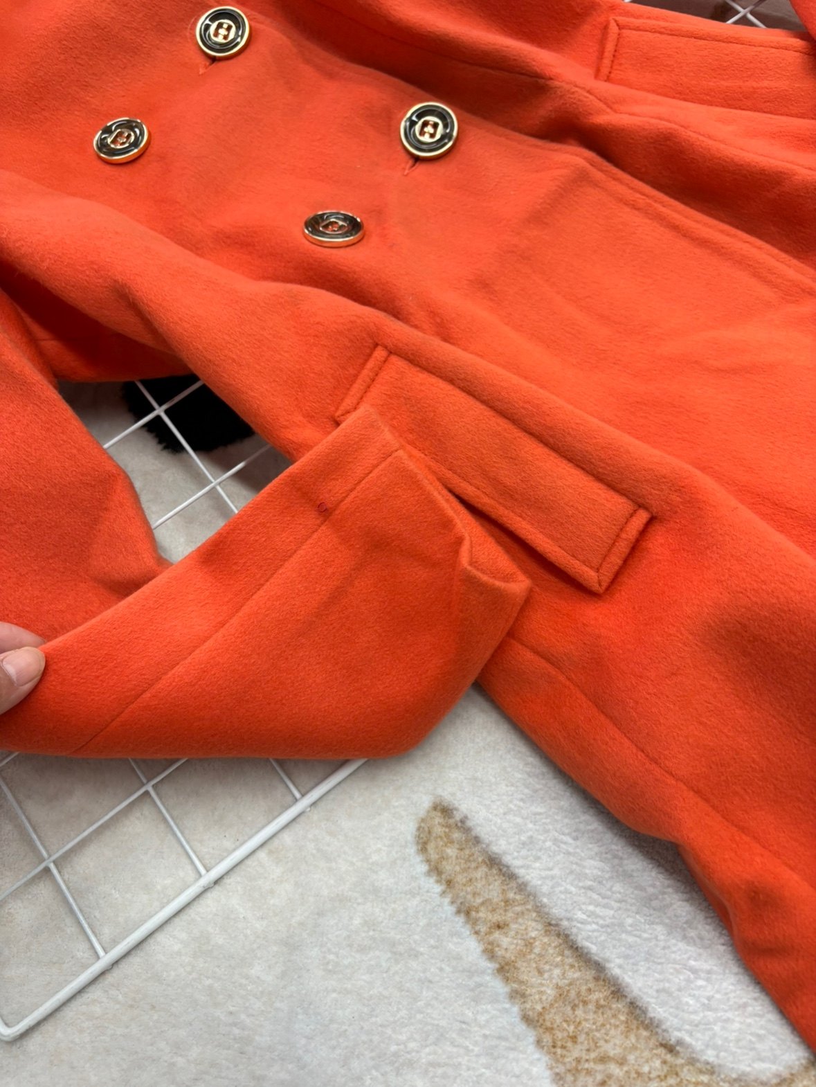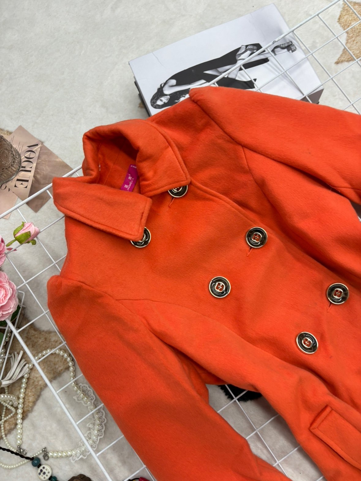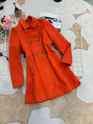 橘色2025新款时尚显白气质显瘦双排扣毛呢外套女中长款呢子大衣