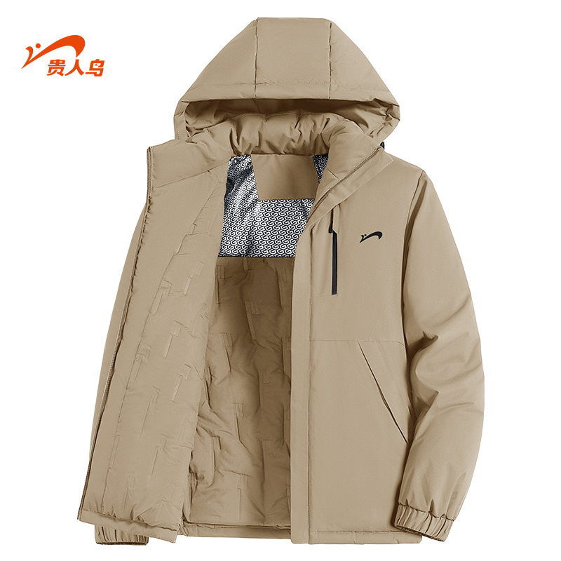 贵人鸟男士外套2025秋季新款轻量户外保暖棉服连帽防泼水防风外套