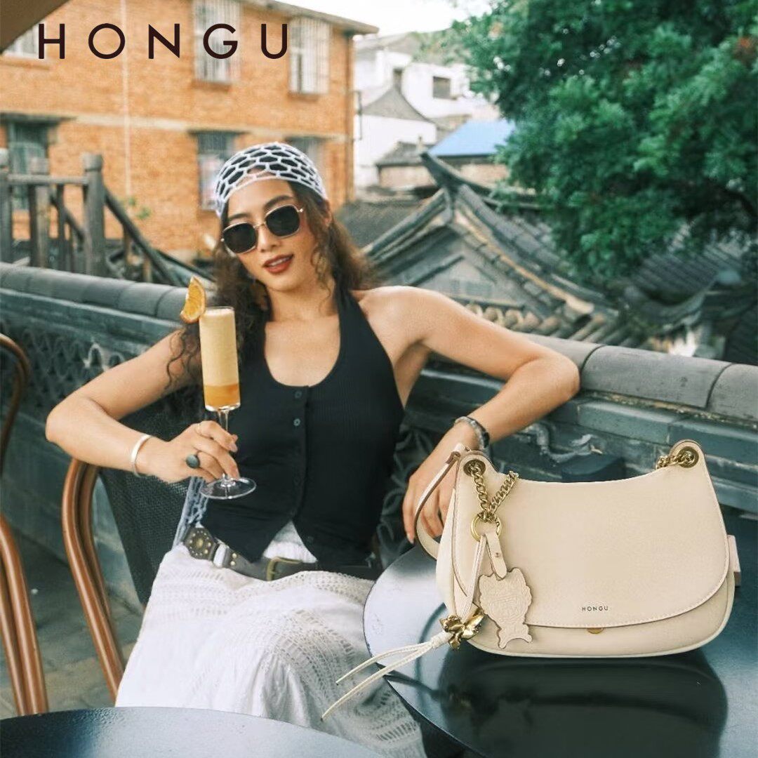 红谷HONGU女单肩包腋下包链条时尚百搭小包真皮猫耳包斜挎包正品