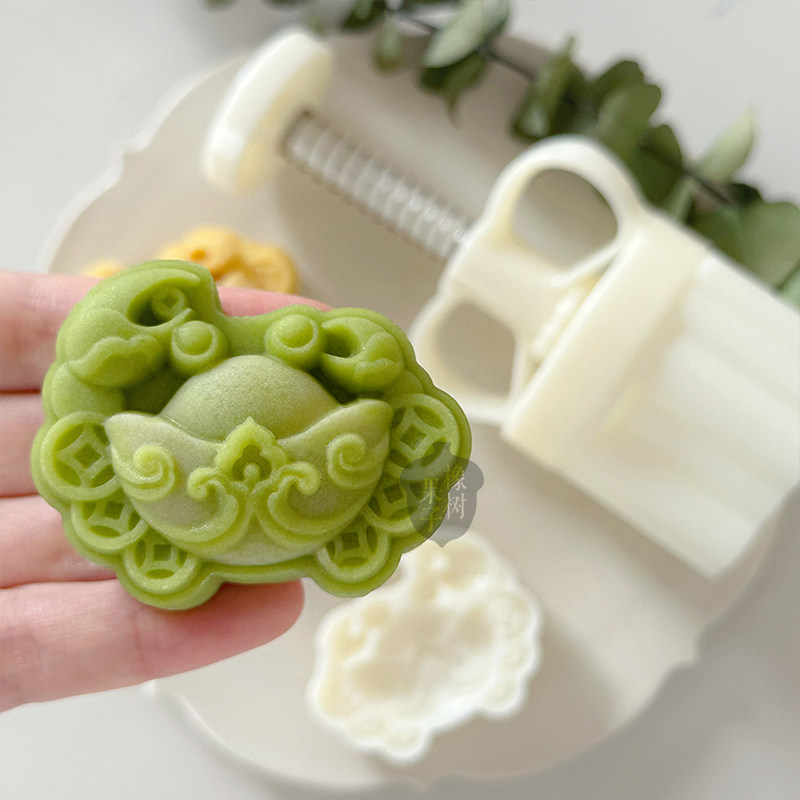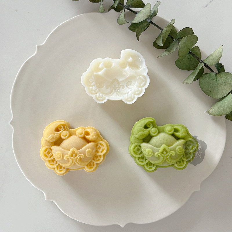 75g国潮风巨有钳螃蟹中秋节月饼模具 中式立体元宝八方来财手压模