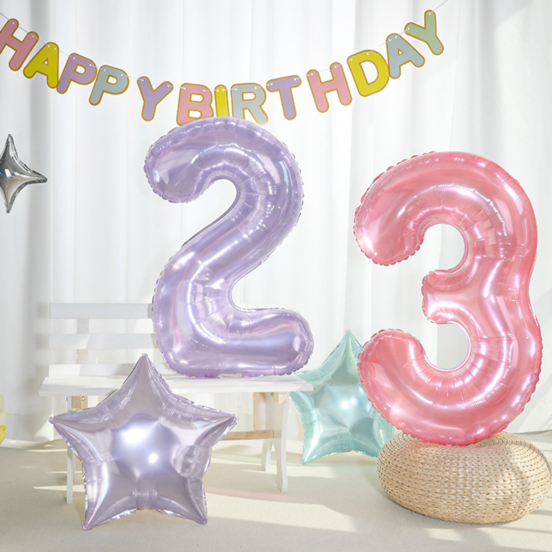 ins风果冻色数字气球儿童女孩宝宝生日装饰场景布置户外拍照道具