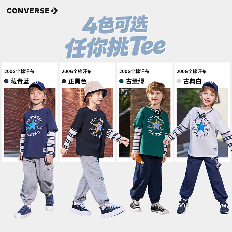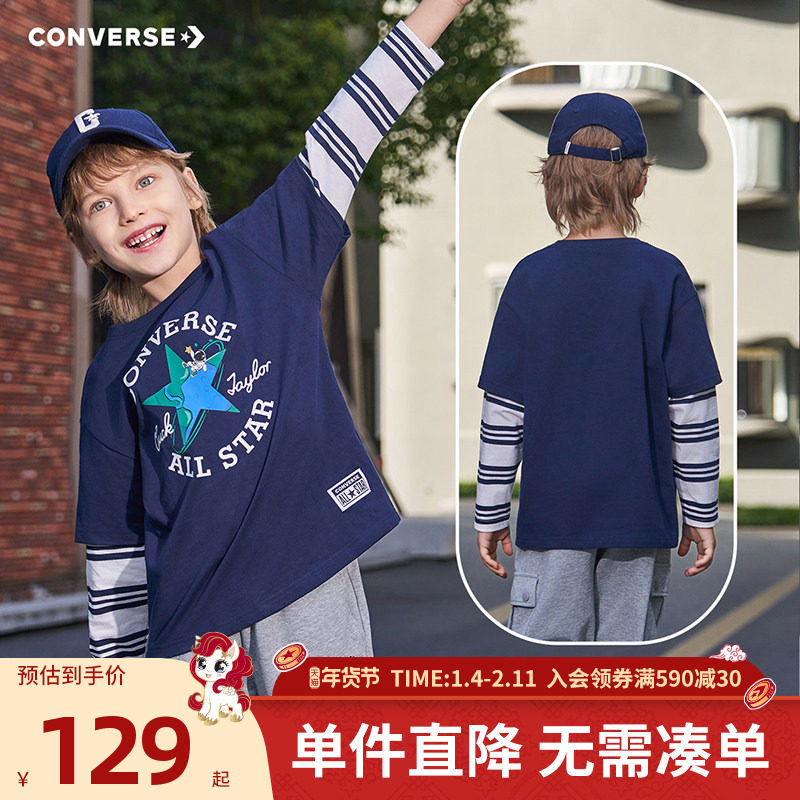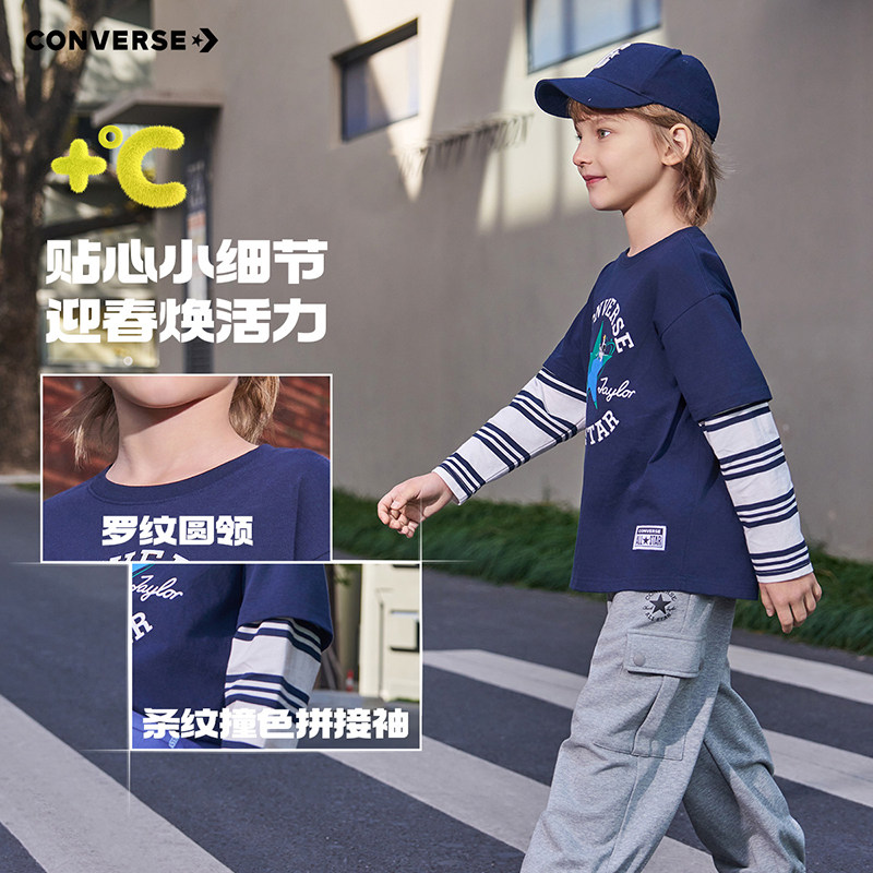 匡威童装男童长袖T恤2026春季新款假两件条纹拼接复古英伦风休闲