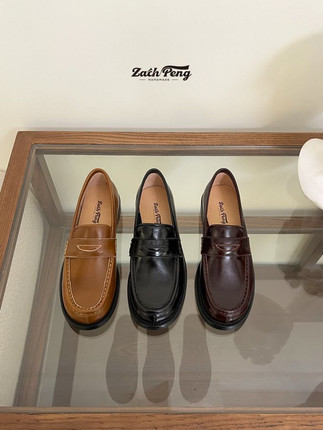zachpeng2024秋季复古英伦小皮鞋女圆头乐福鞋一脚蹬软皮休闲单鞋