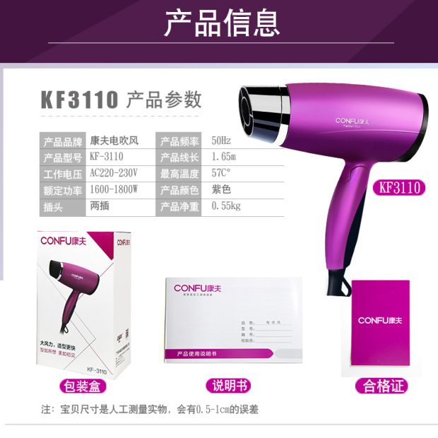 康夫电吹风家用1800W折叠式旅行便携式冷热风大风力速干吹风机筒