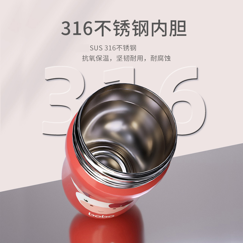 bobo官方旗舰店婴幼儿保温杯学饮水杯上学专用防呛带吸管幼儿园