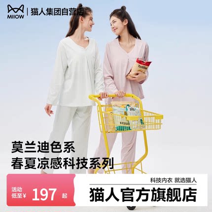 春夏凉感睡衣莫代尔家居服猫人