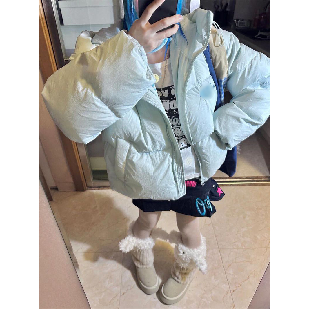软妹可爱小个子冬季字母刺绣连帽棉服女学生宽松防寒百搭棉衣外套
