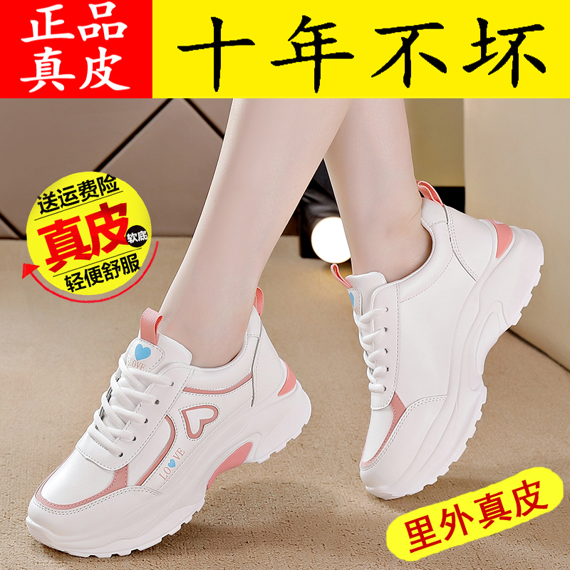 爆款真皮小白鞋女鞋子秋季厚底松糕鞋休闲板鞋2025年新款运动鞋女