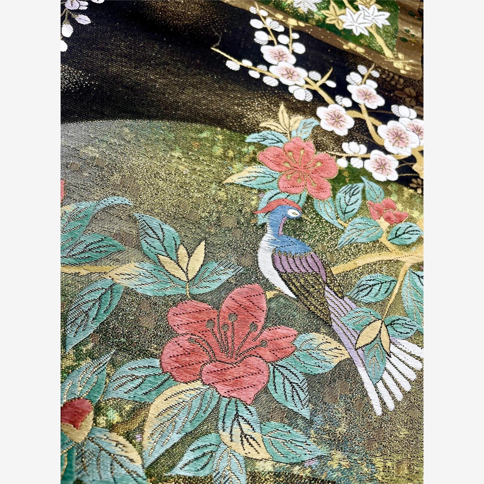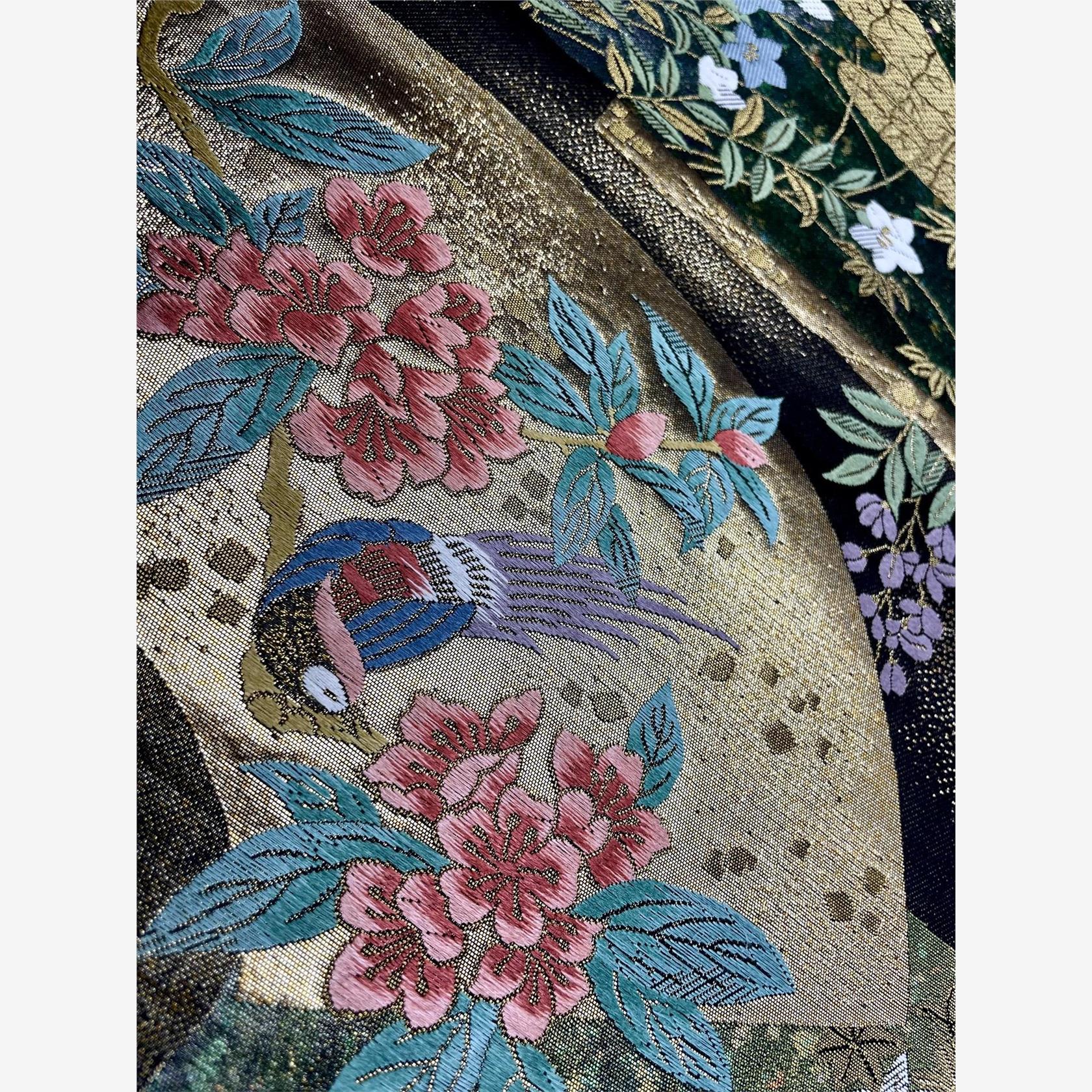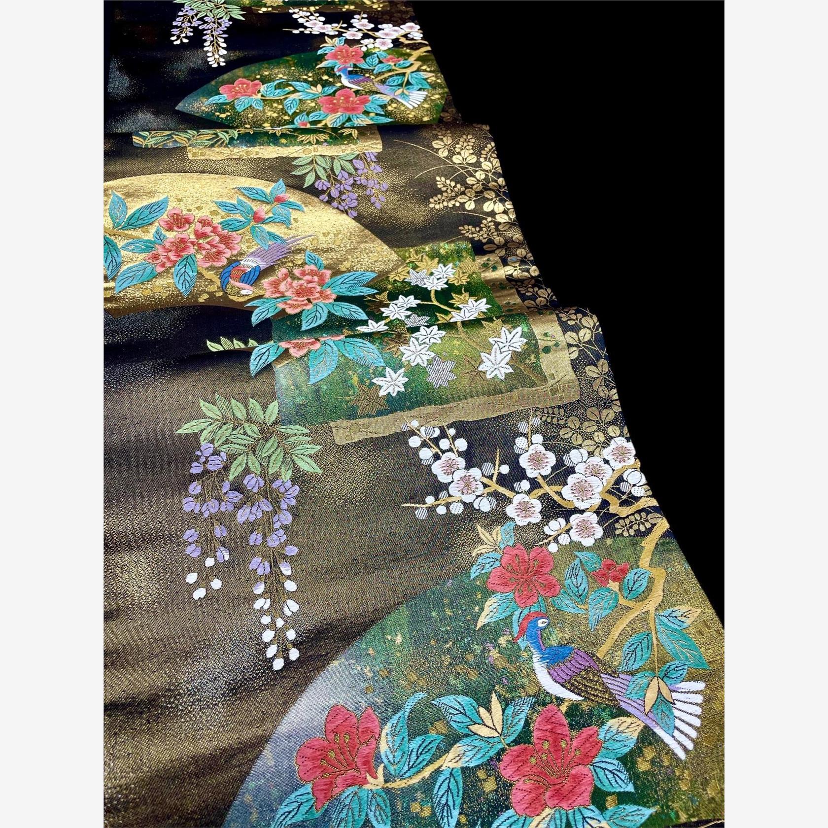 【莳绘花鸟文】六通正绢真丝唐织唐锦西阵织茶席桌旗手工面料kesi