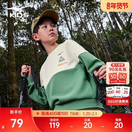 鸿星尔克童装男童卫衣冬季款2026新款大童运动上衣长袖儿童百搭女