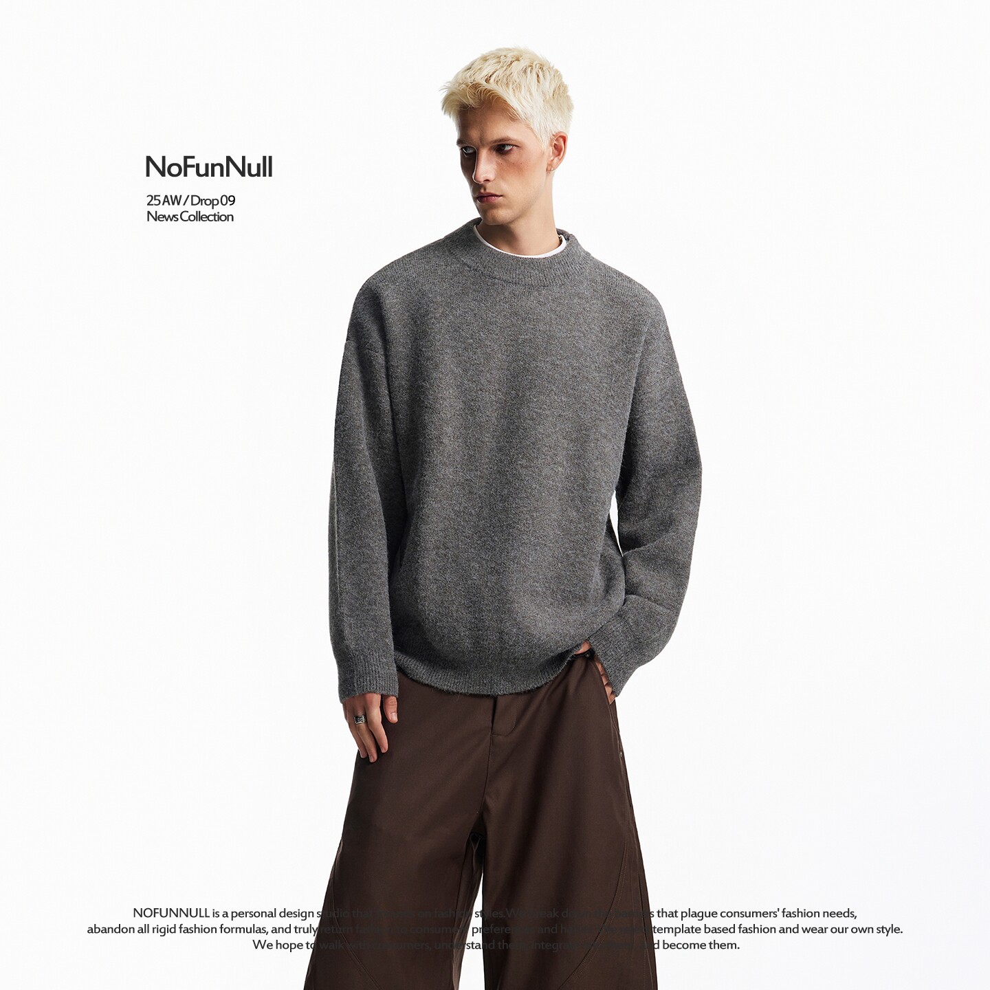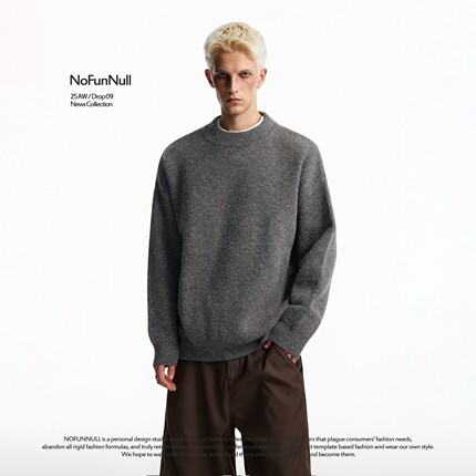 NOFUNNULL 重磅圆领宽松套头毛衣秋冬男高质针织衫上衣内搭打底女