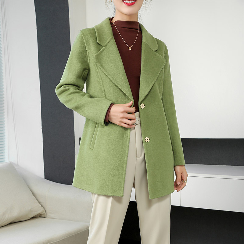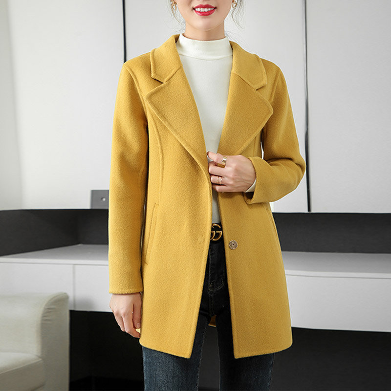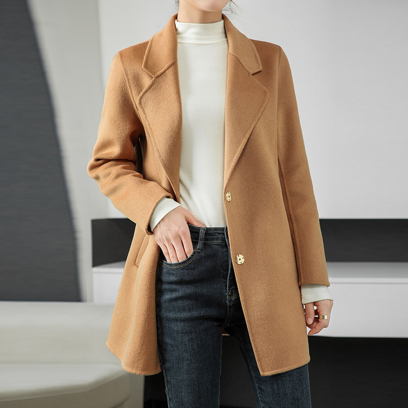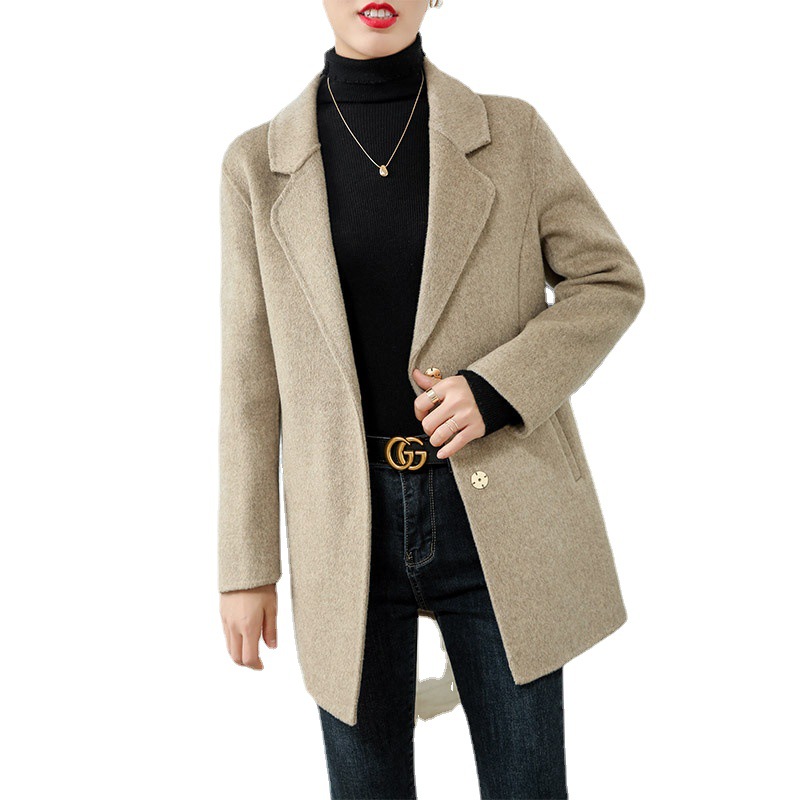 秋冬双面呢羊绒大衣女2025新款中长款西装领修身羊毛呢子外套女装