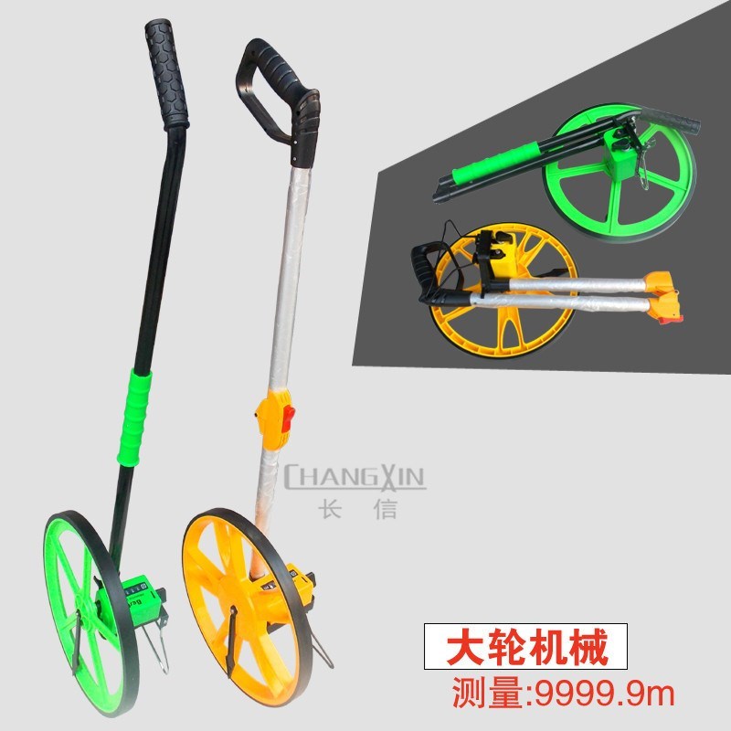 手推式测轮折叠轮式测距仪大号工地路面测距轮绿色机械测距轮