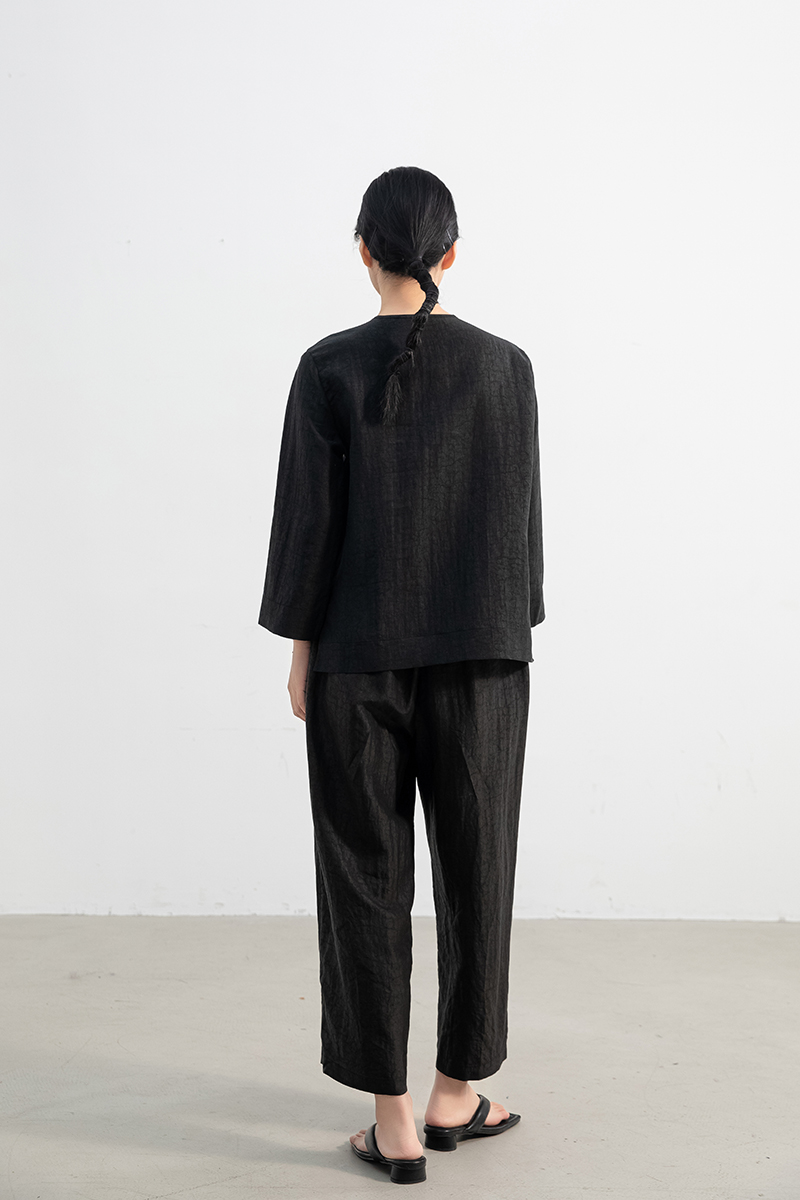东方豆蔻春夏新款桑蚕丝新中式香云纱女九分袖外套上衣Y322