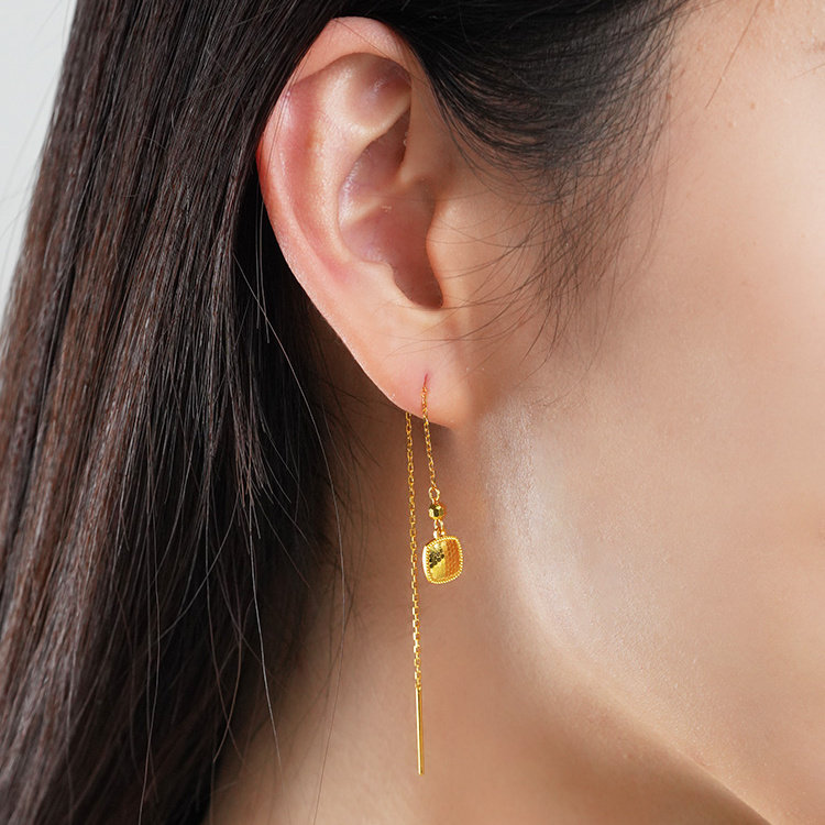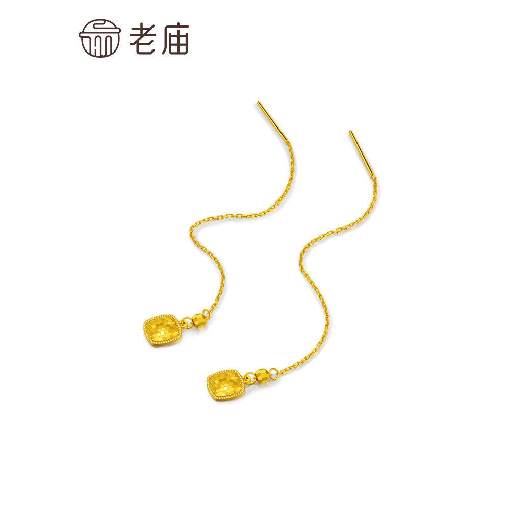 老庙足金999碎碎金长款耳线