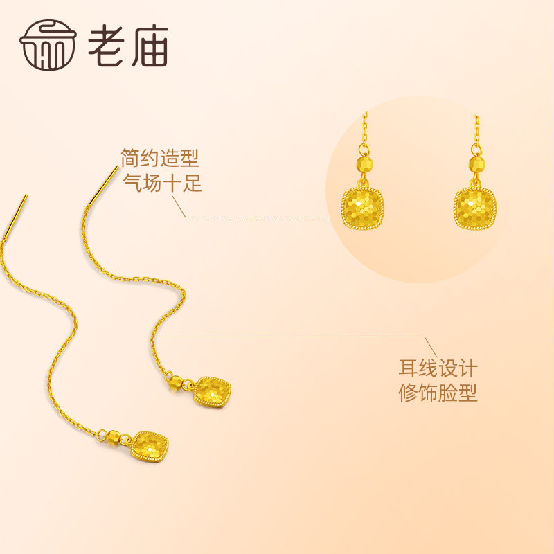 老庙黄金足金999碎碎冰金长款耳线闪耀迷人气质显白送礼正品