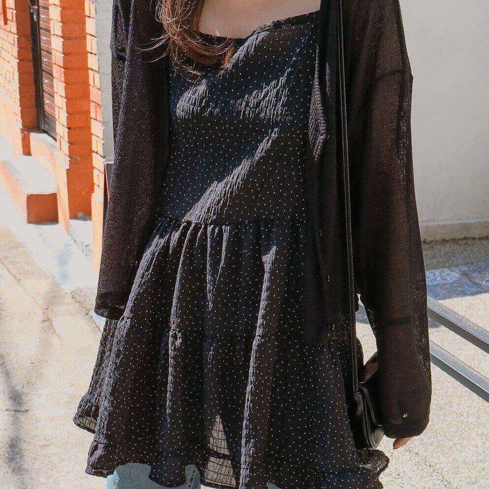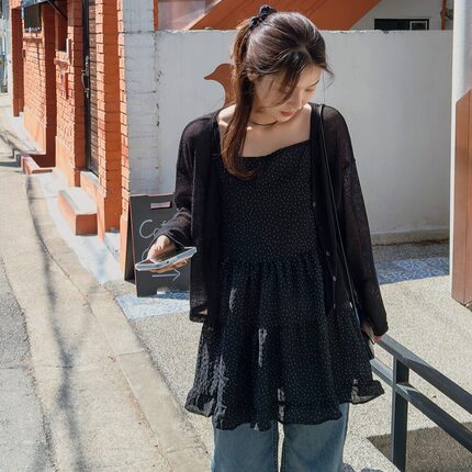 INS韩系甜美减龄小众气质圆点波点雪纺叠穿百搭背心吊带连衣裙
