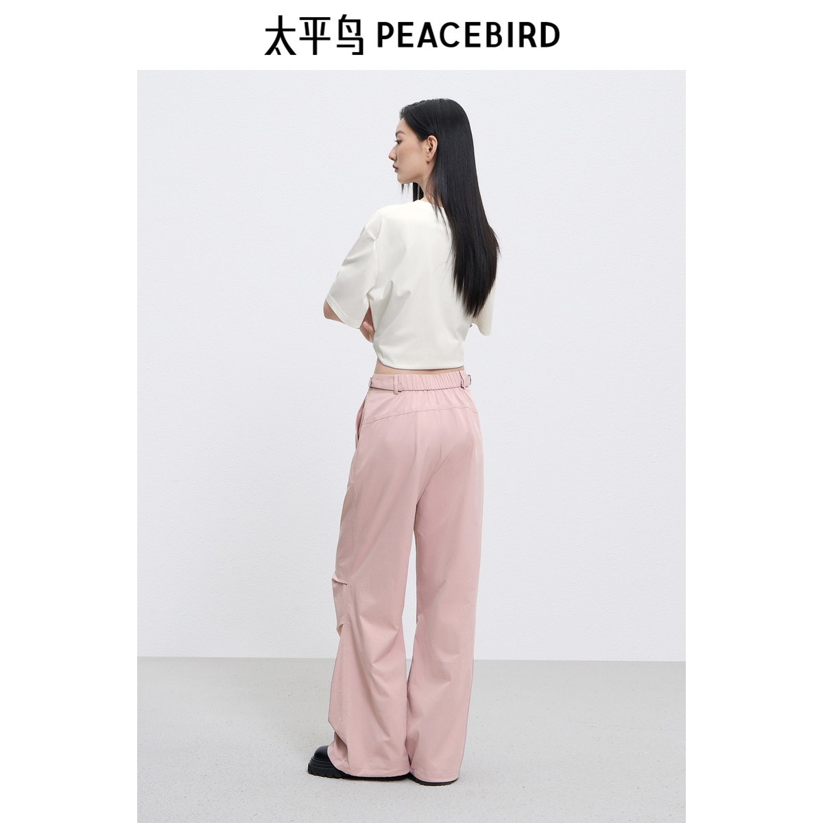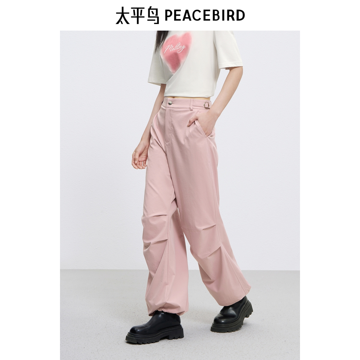 太平鸟宽松高腰休闲裤2025年春季新款吸湿速干阔腿抽绳束脚伞兵裤