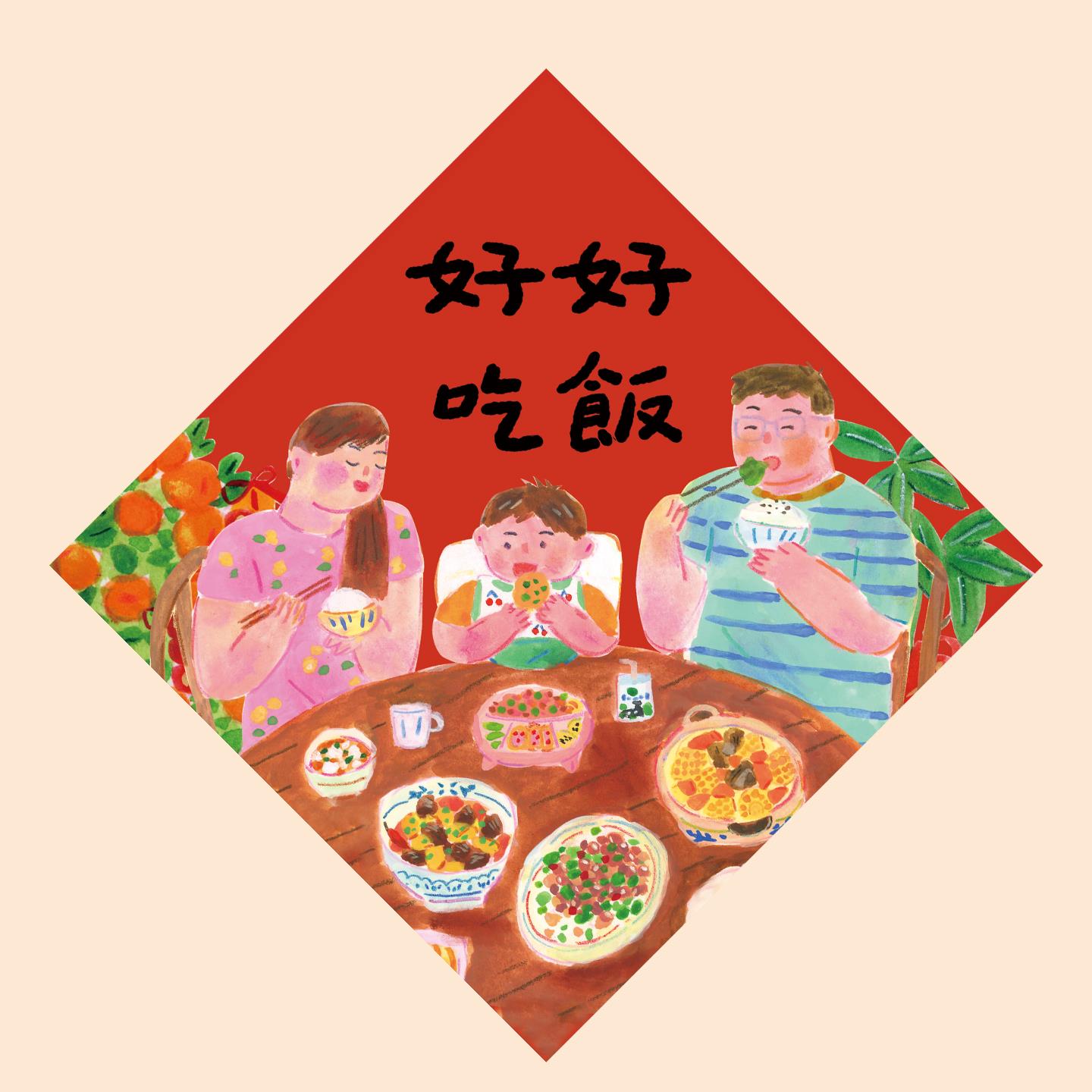 2026新年好好吃饭福字门贴福贴斗方墙贴房间布置装饰创意可爱窗贴