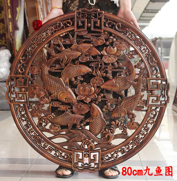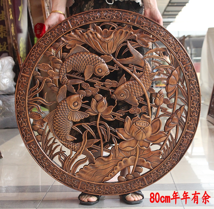 木雕挂件实木香樟木中堂客厅玄关背景墙中式仿古墙饰鱼包邮