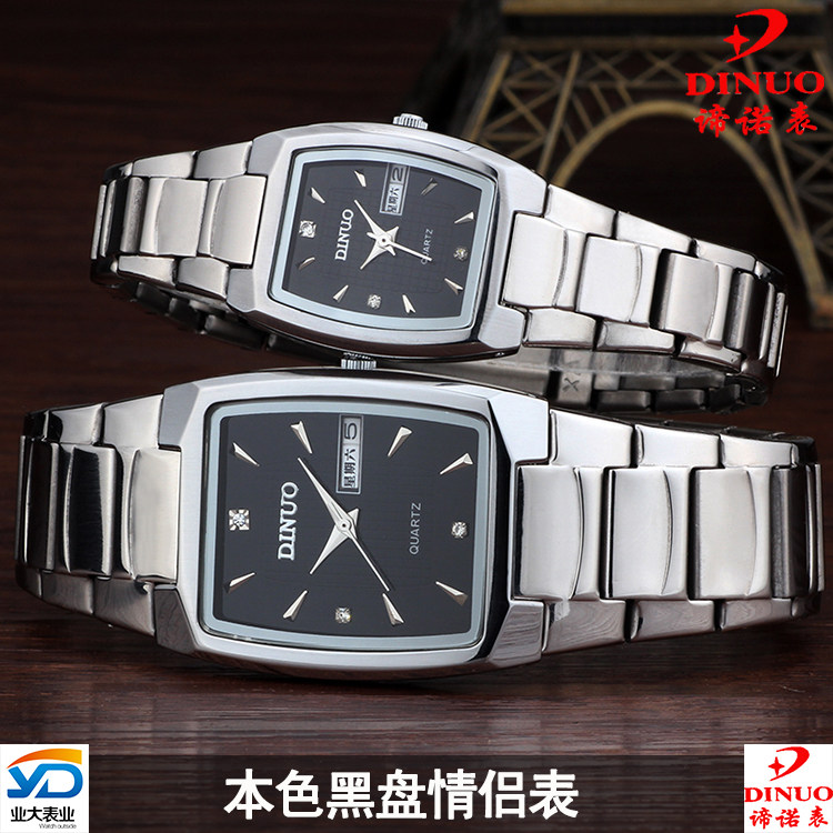 正品DINUO谛诺手表 长方形男女双历防水时尚情侣表一对价男表女表