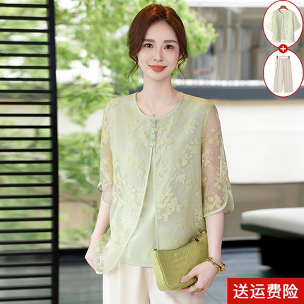 母亲节中年妈妈夏装时尚套装2025新款中老年女装洋气七分袖两件套