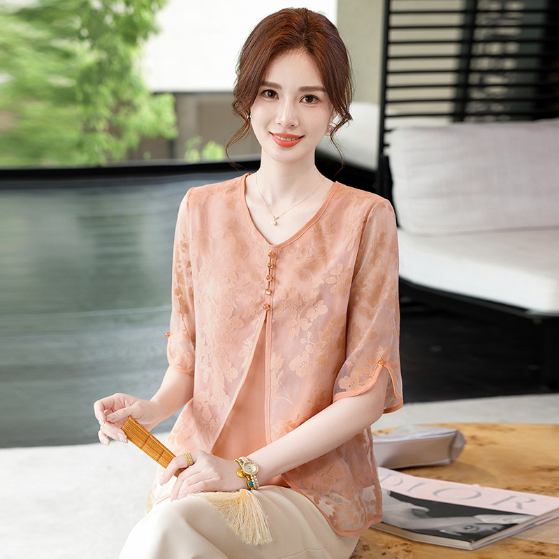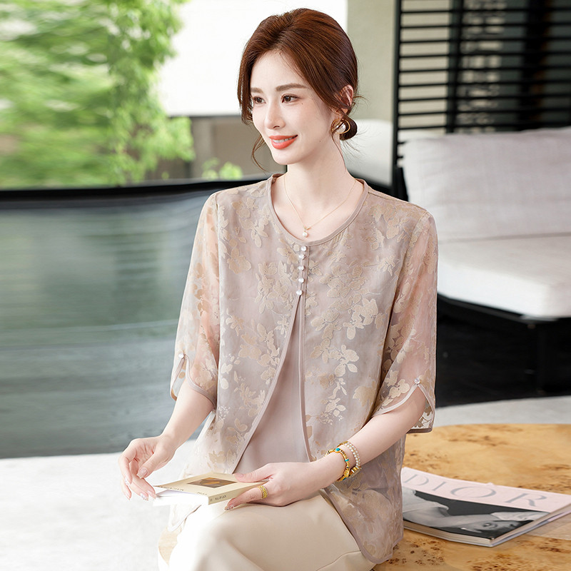 妈妈装夏装七分袖假两件打底衫女