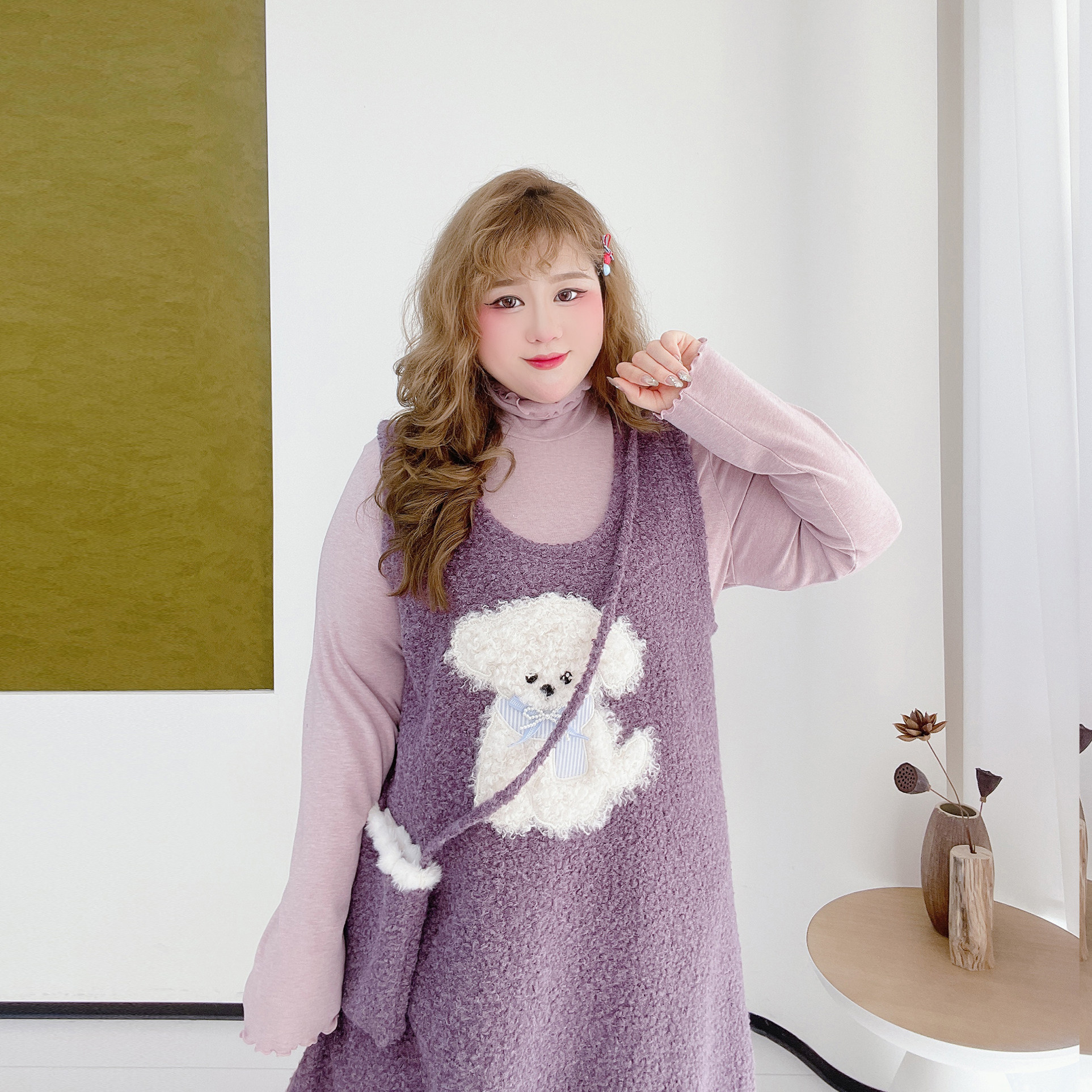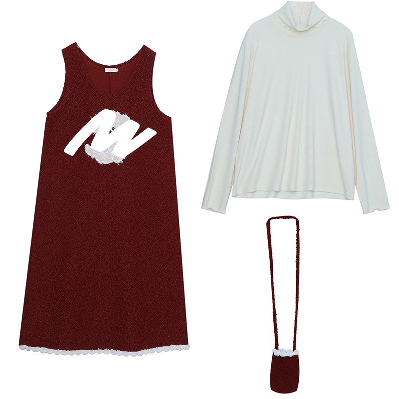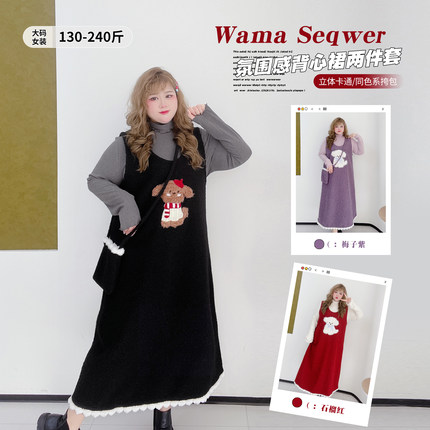 少女感减龄新年套装胖莹莹大码女装高领打底衫显瘦卡通背心连衣裙