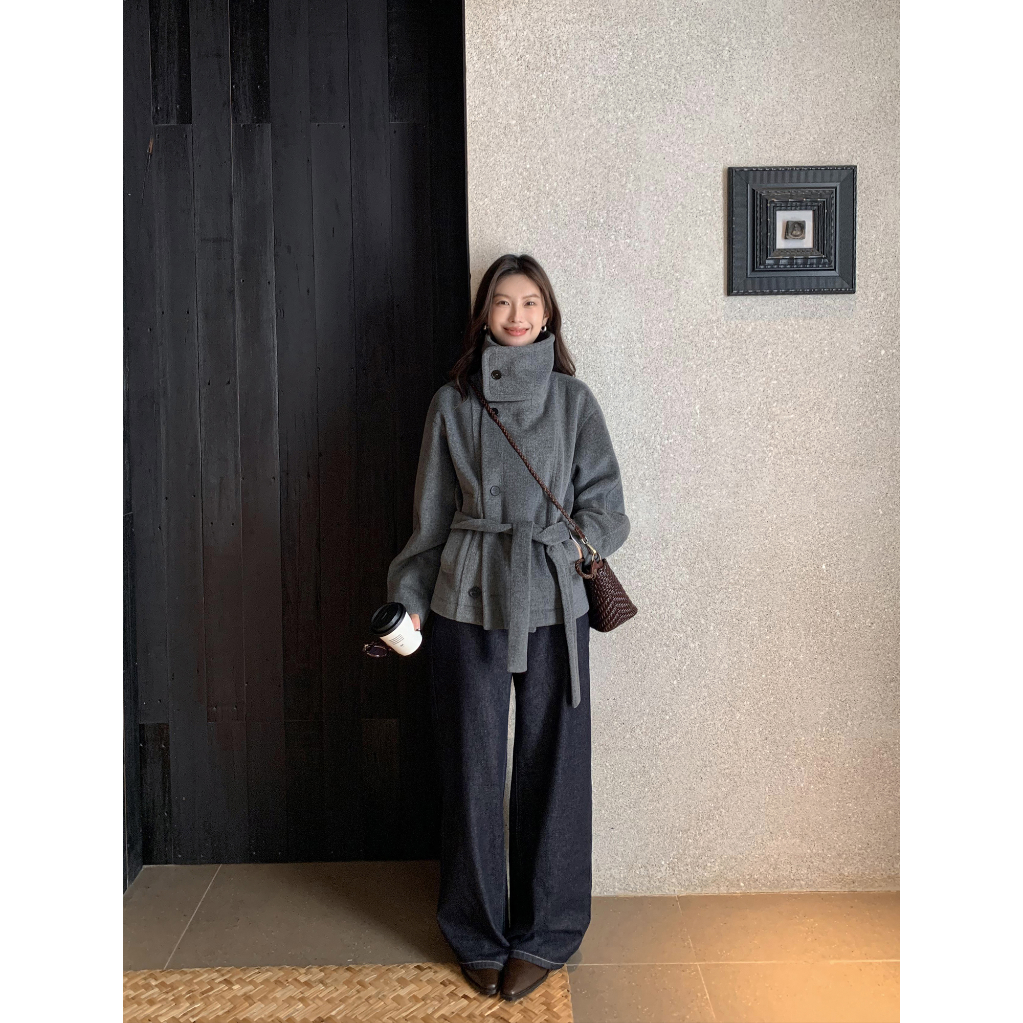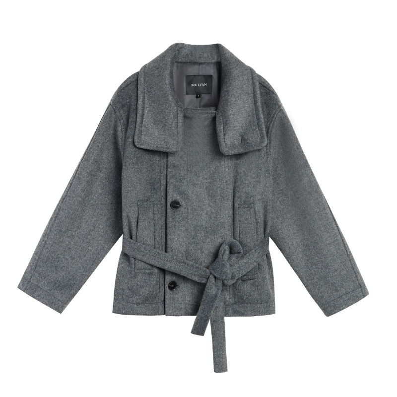 MULVAN复古设计感毛呢外套女秋冬宽松显瘦短款气质小个子呢子大衣