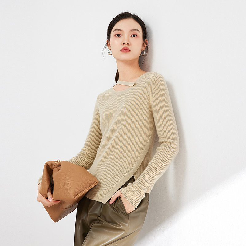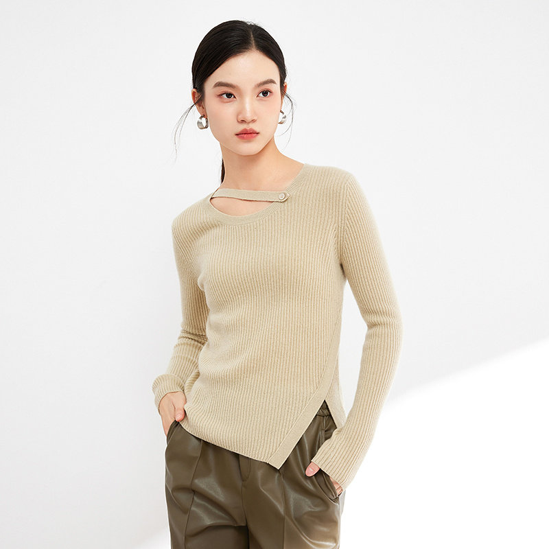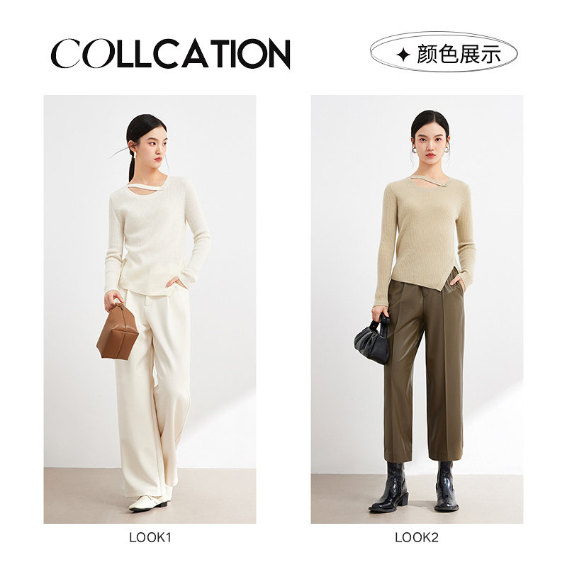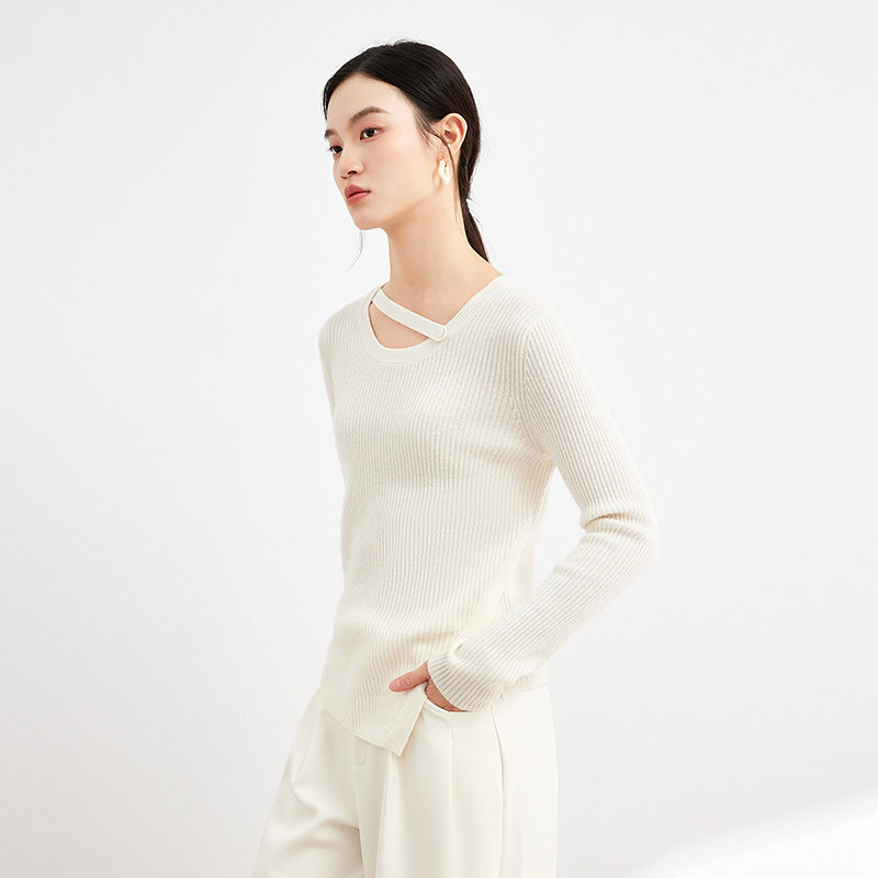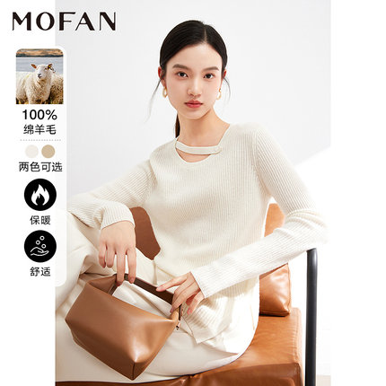 MOFAN摩凡100%绵羊毛高级感毛衣女春秋新款象牙白设计感针织衫