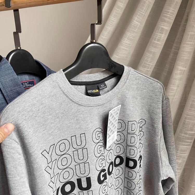 春季薄款!外贸男女式简洁百搭印花休闲圆领套头长袖衫卫衣打底衫