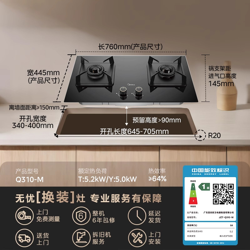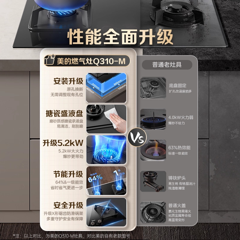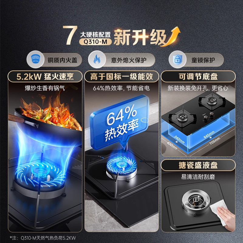 美的燃气灶店铺补贴天然气液化气家用双灶Q310嵌入式5.2kw 猛火灶