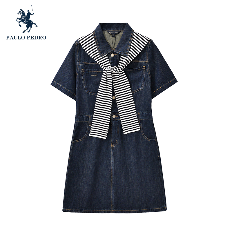 保罗彼得2025夏新款女牛仔短袖连衣裙时尚休闲专柜同款 CYEA52730