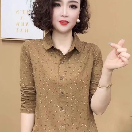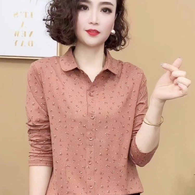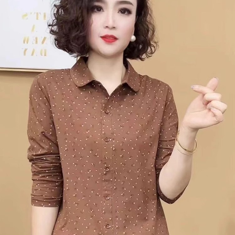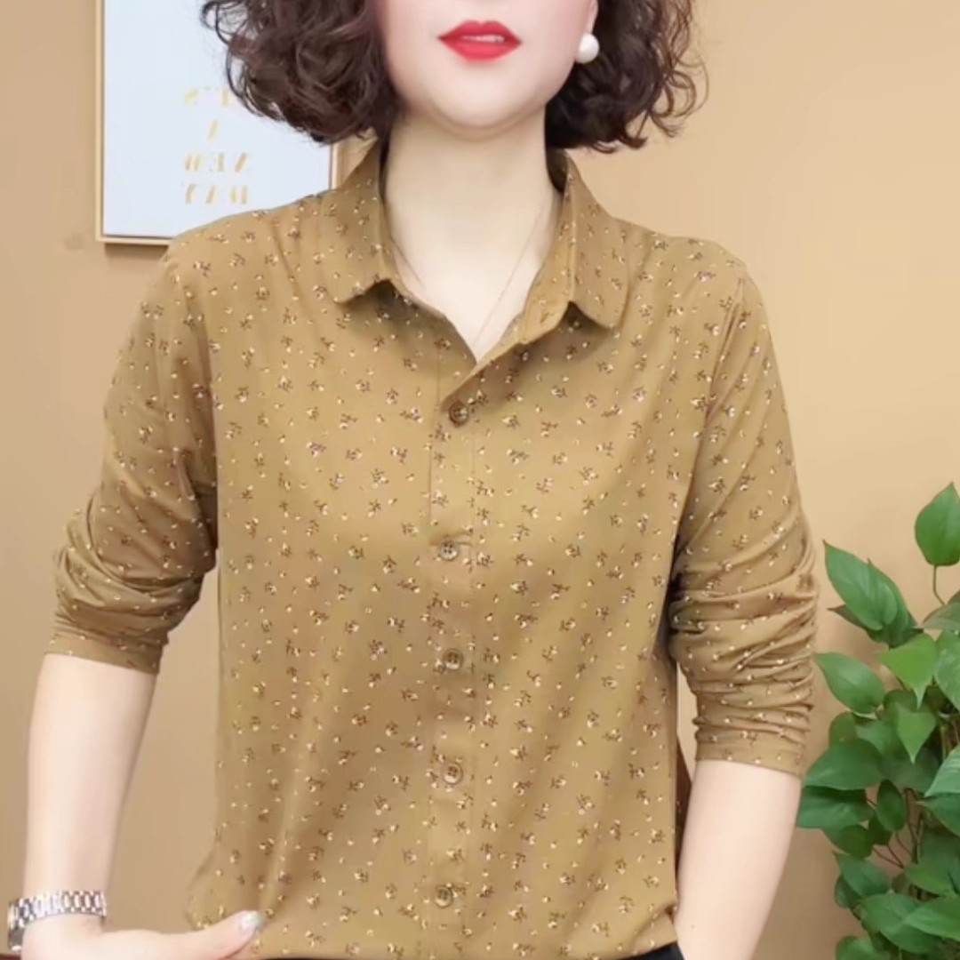 妈妈装打底衫女春秋翻领长袖碎花上衣女Q女士衬衫2025新款宽松A5