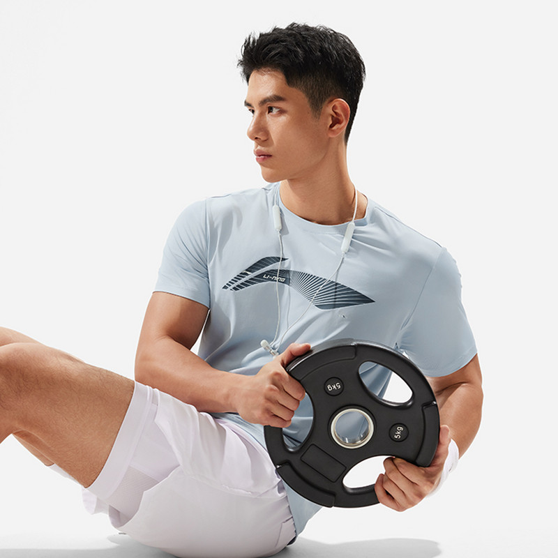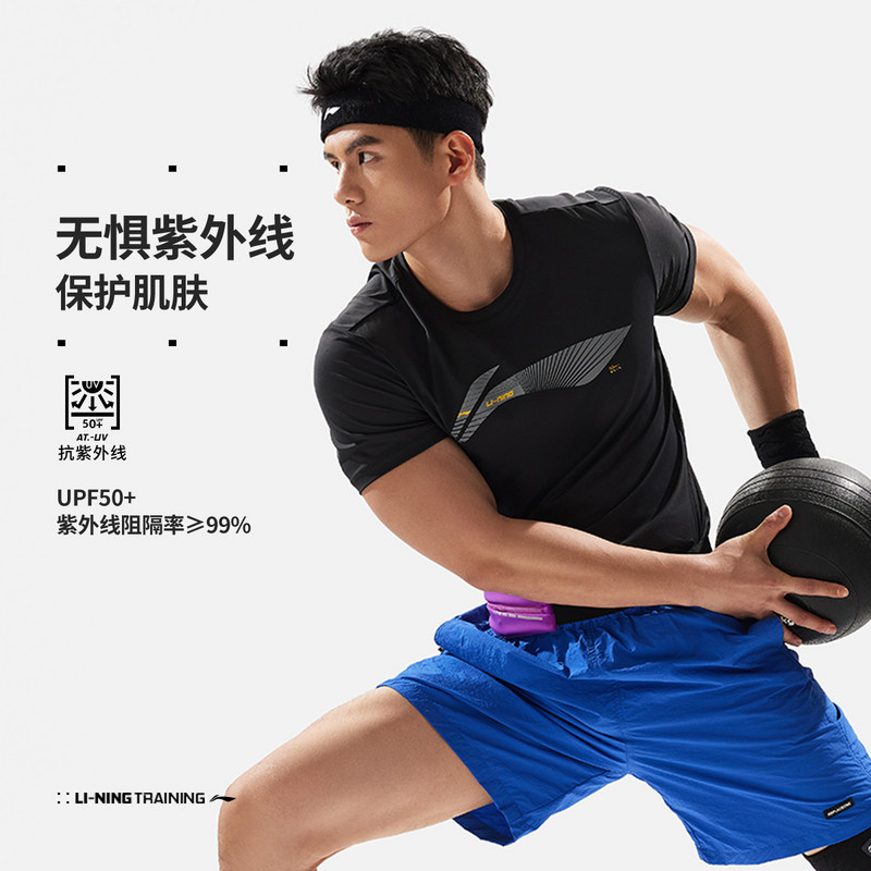 李宁短袖秋男子健身系列时尚透气常规简约圆领短袖T恤ATSU021-B品