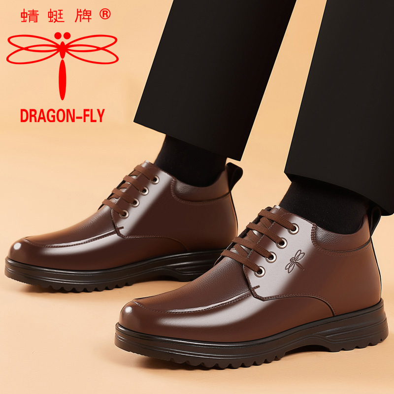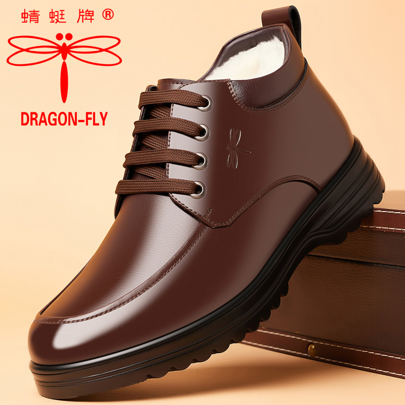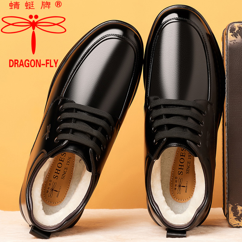 棉鞋男冬季加绒加厚保暖休闲高帮棉皮鞋真皮羊毛防滑中老年爸爸鞋