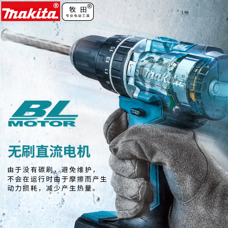 牧田DF002充电钻40V锂电冲击钻HP002大功率手电钻起子电动螺丝刀