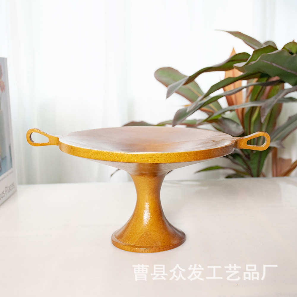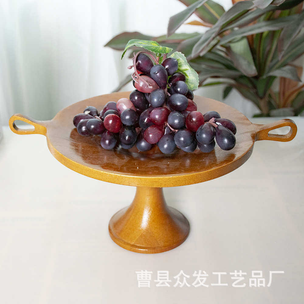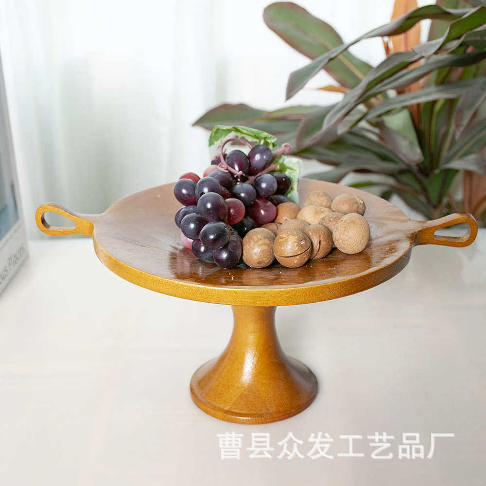 实木果盘法式复古木质水果点心托盘创意桌面艺术摆件高脚装饰果盘